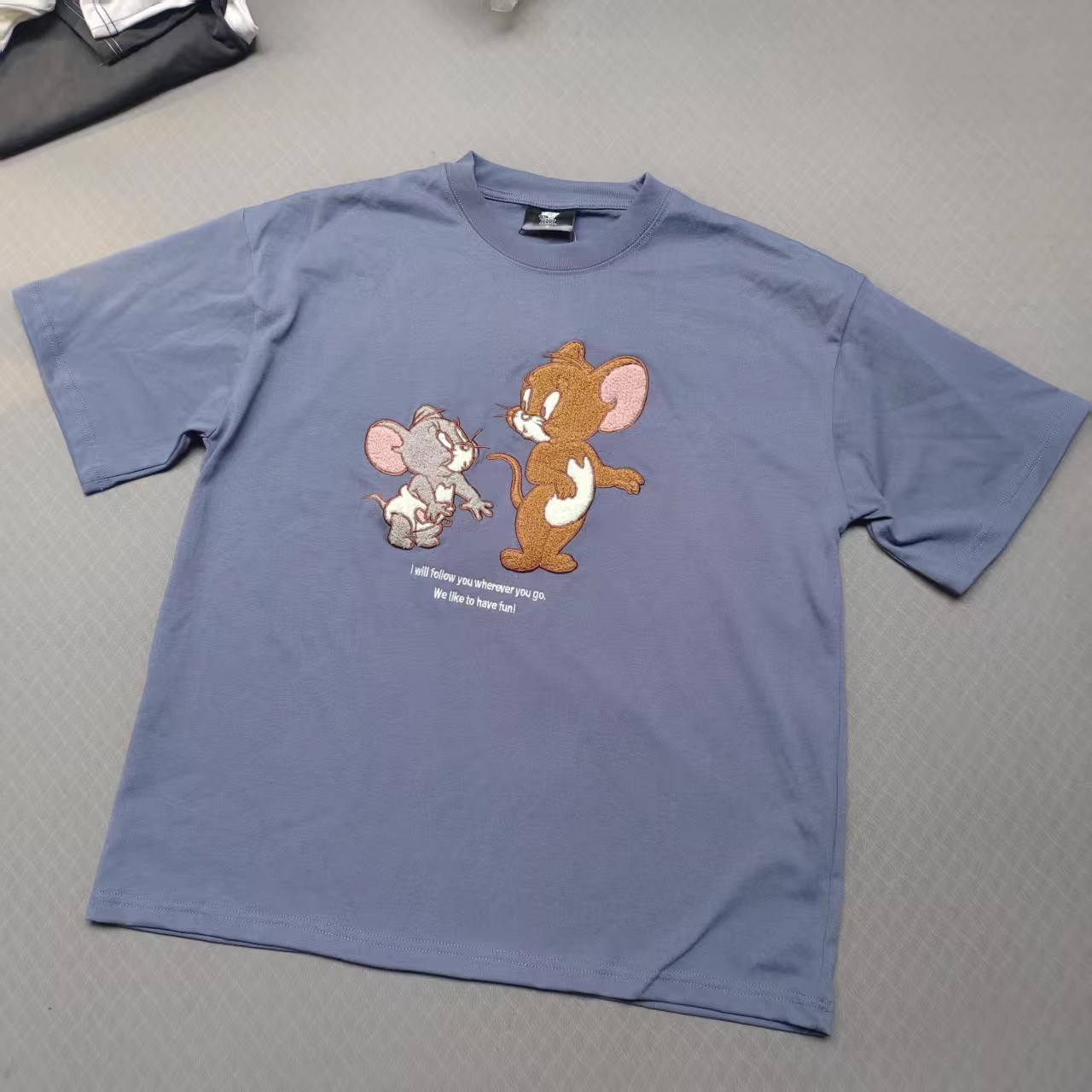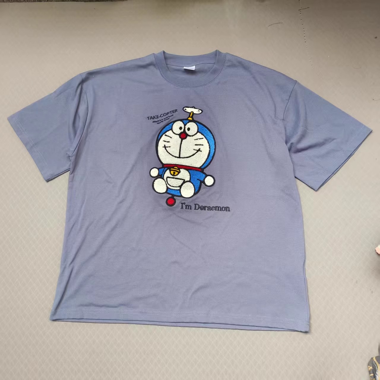 日单男女同款夏季毛巾绣卡通短袖T恤汗衫
