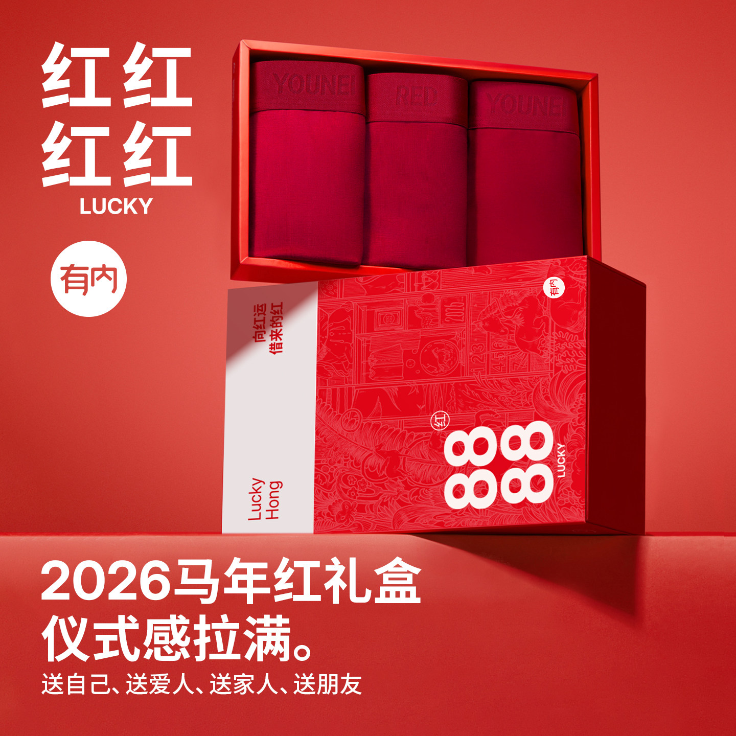 有内红色内裤男士马年本命年纯棉抗菌裆结婚新款礼盒男款男生短裤