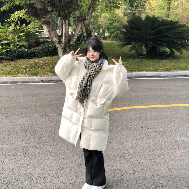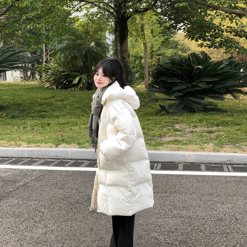 中长款纯色百搭连帽羽绒服女冬2025年新款韩版宽松加厚白鸭绒外套