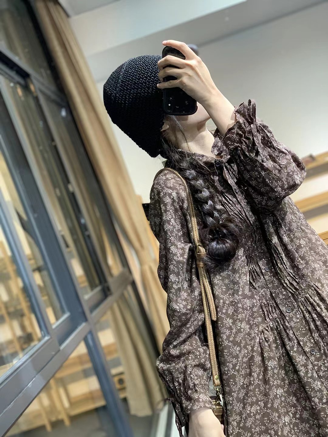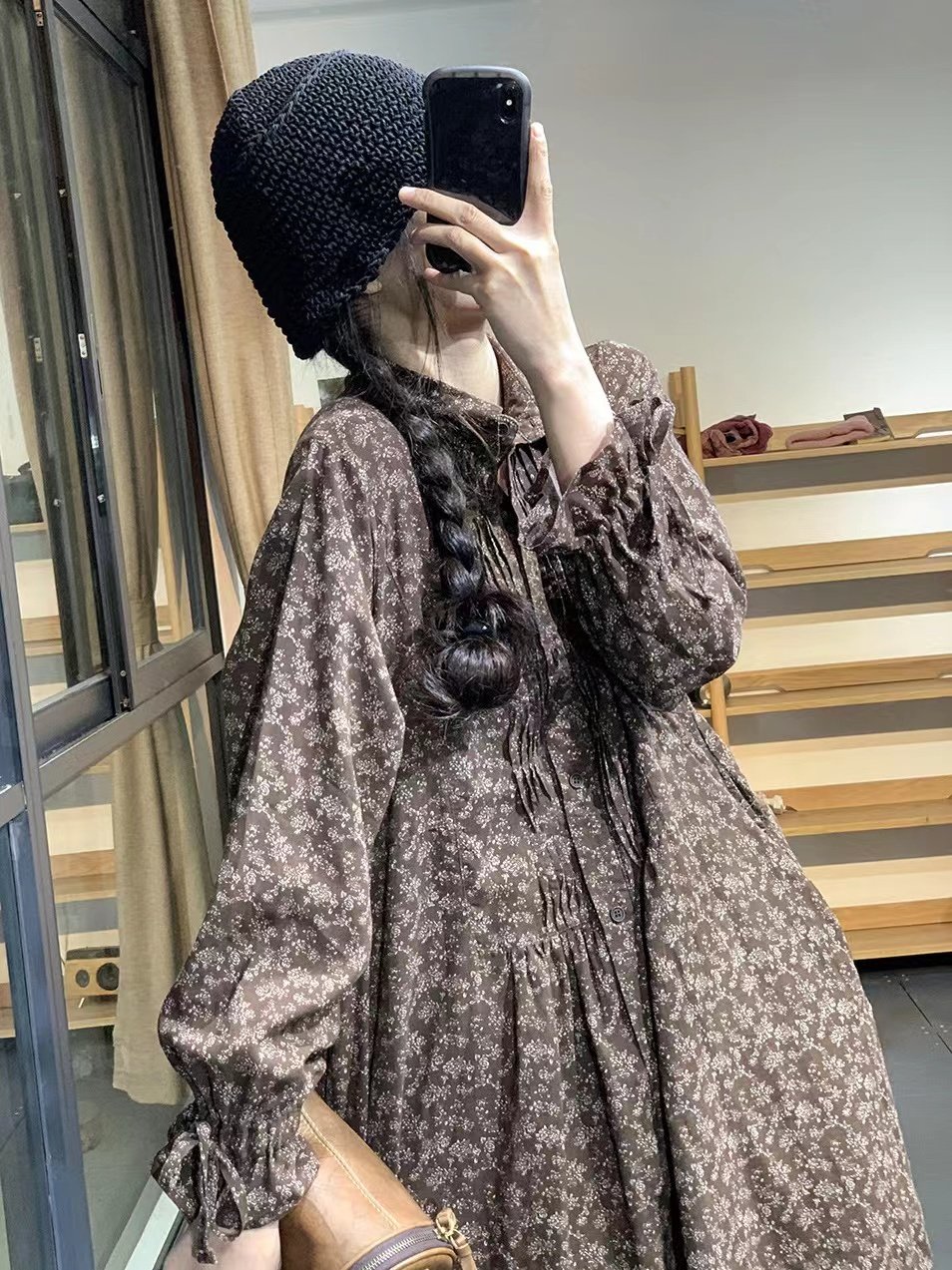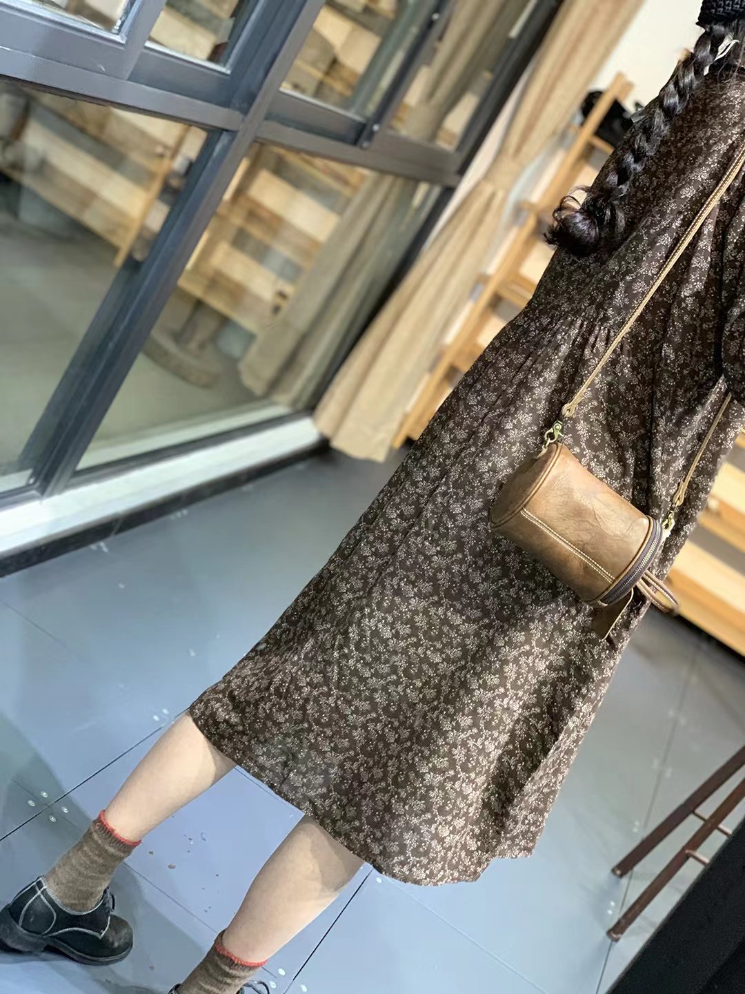 撤柜奥特莱斯清仓捡漏亚麻衬衫裙女春秋复古森系碎花褶皱连衣裙潮