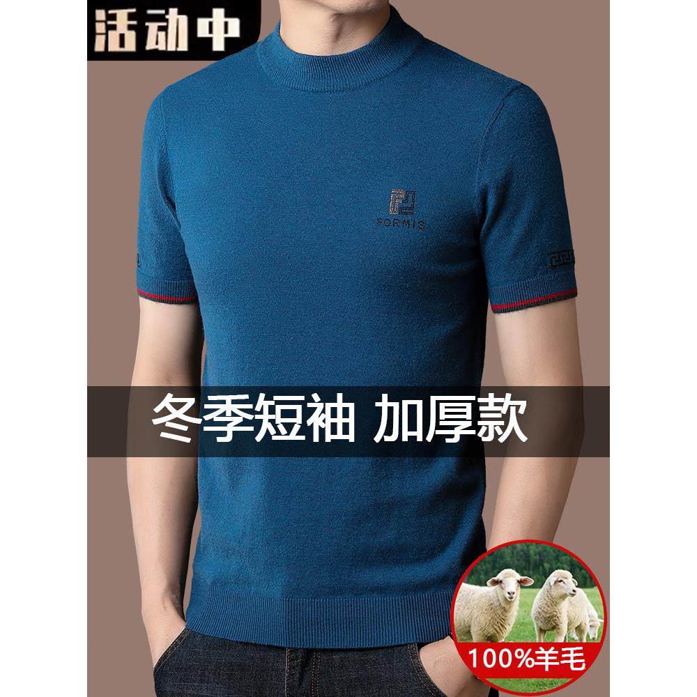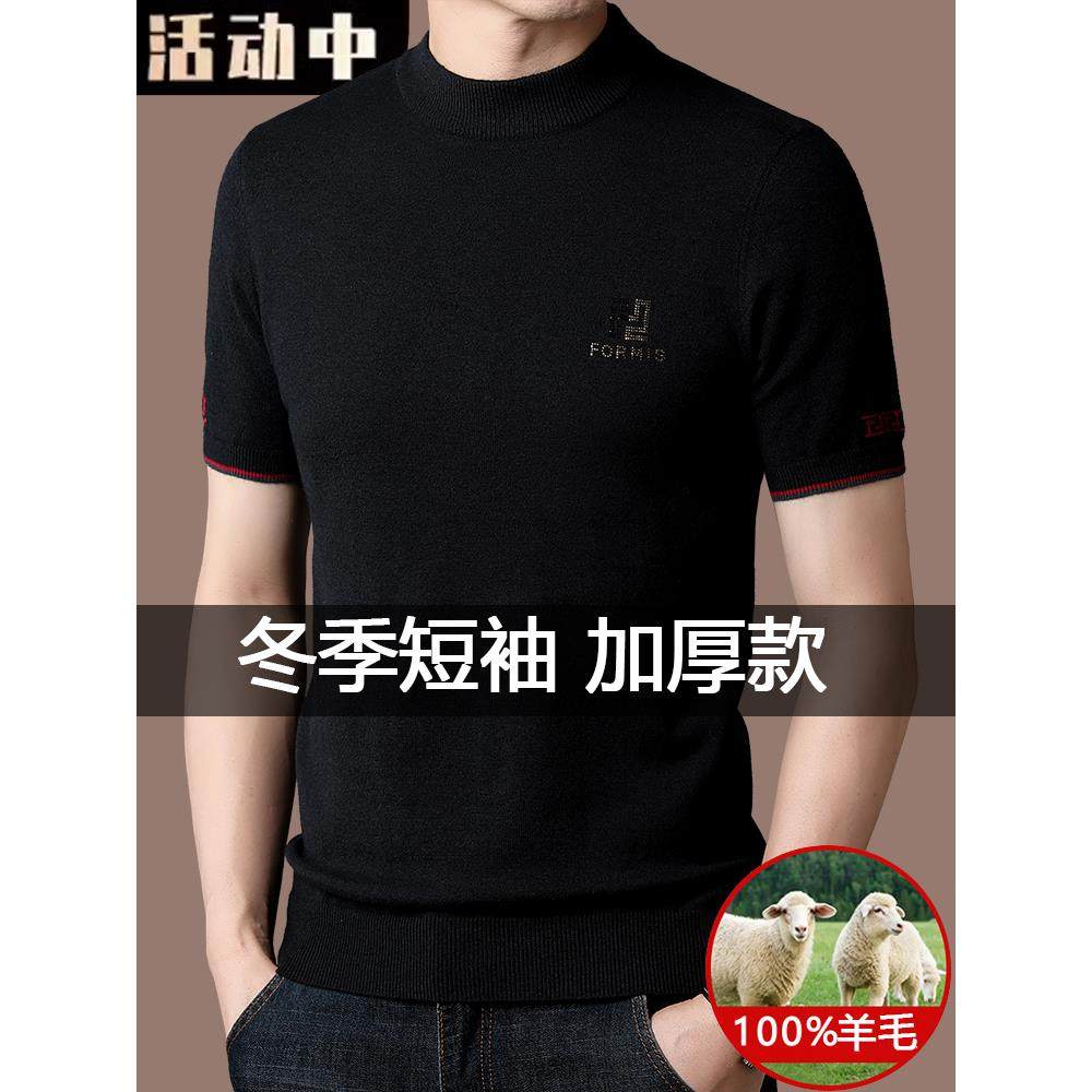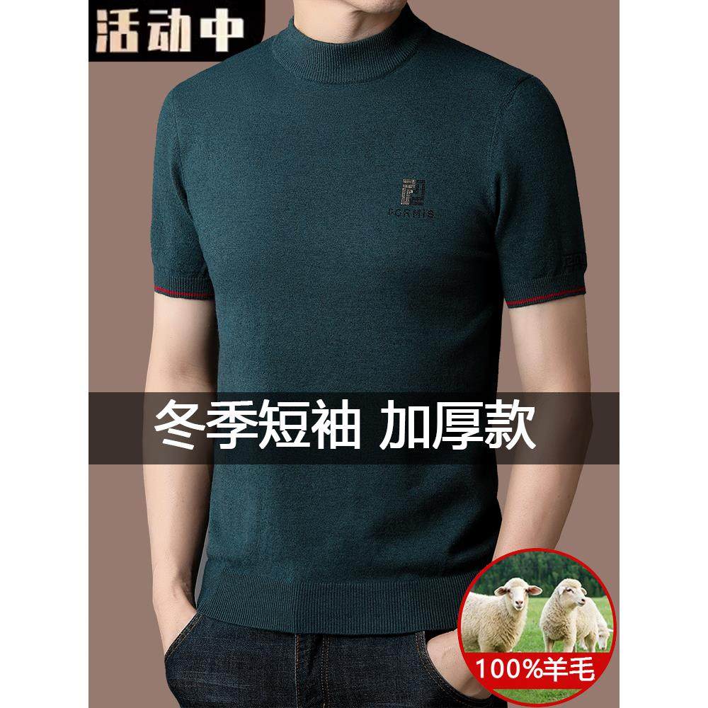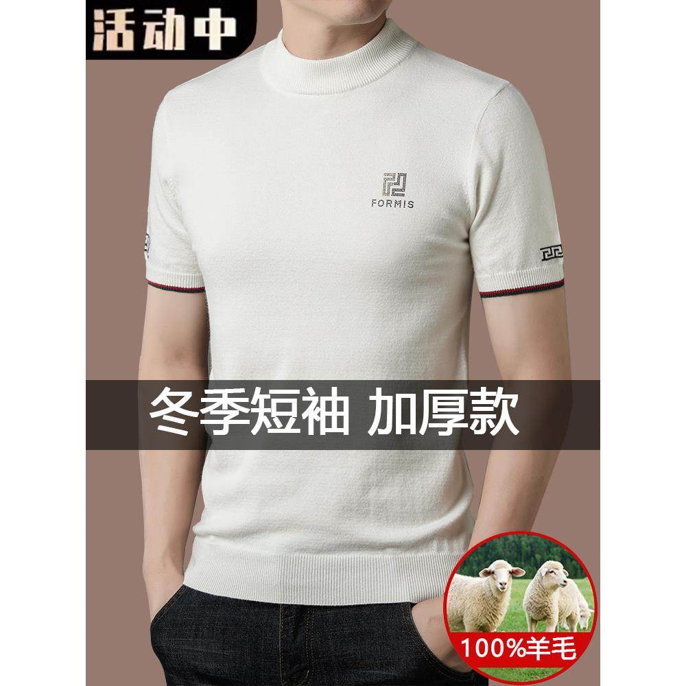 鄂尔多斯市产新款冬季短袖羊毛衫男半高领烫钻羊绒针织衫半袖毛衣