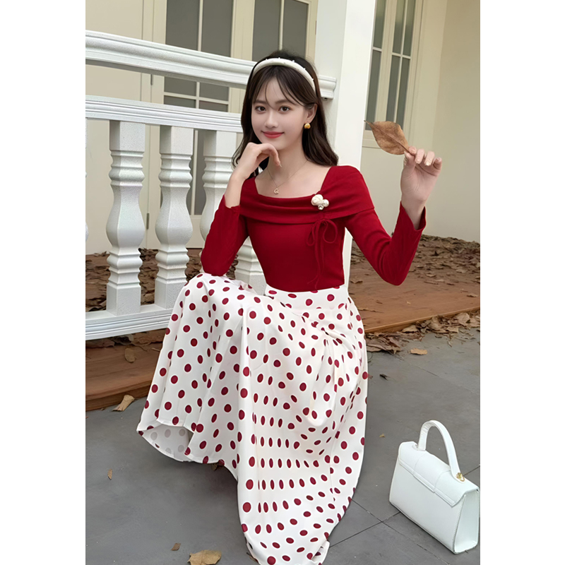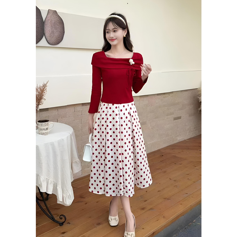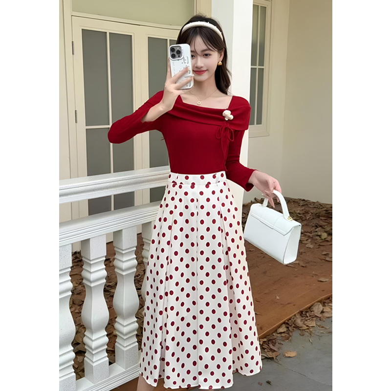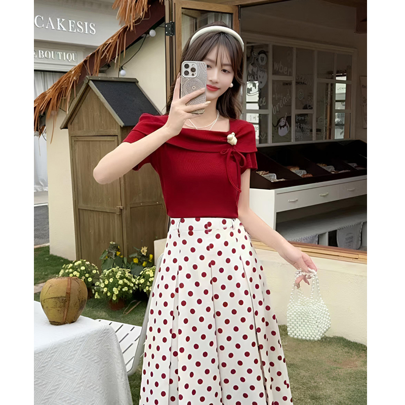 ASY/2025夏季短袖法式波点套裙法式套装显瘦气质高腰时尚中长款