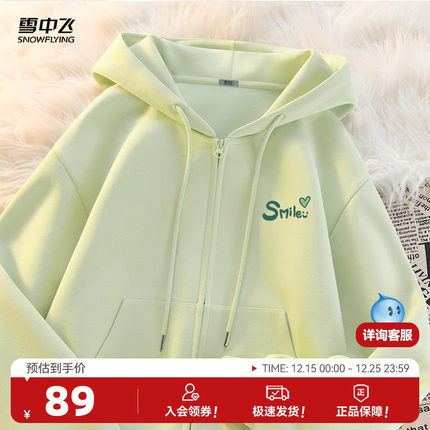 雪中飞外套女款春秋薄款2025新款女士运动拉链上衣绿色开衫卫衣PC