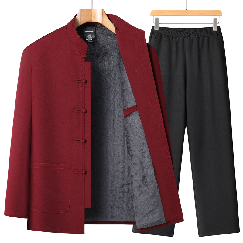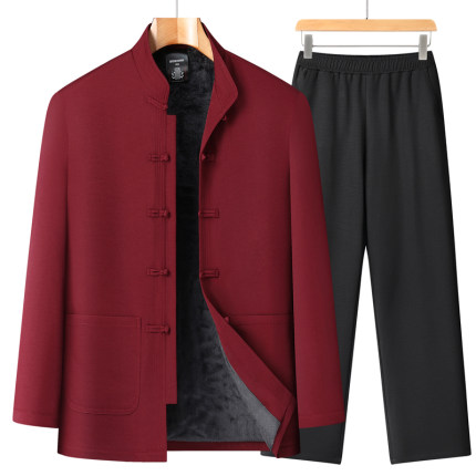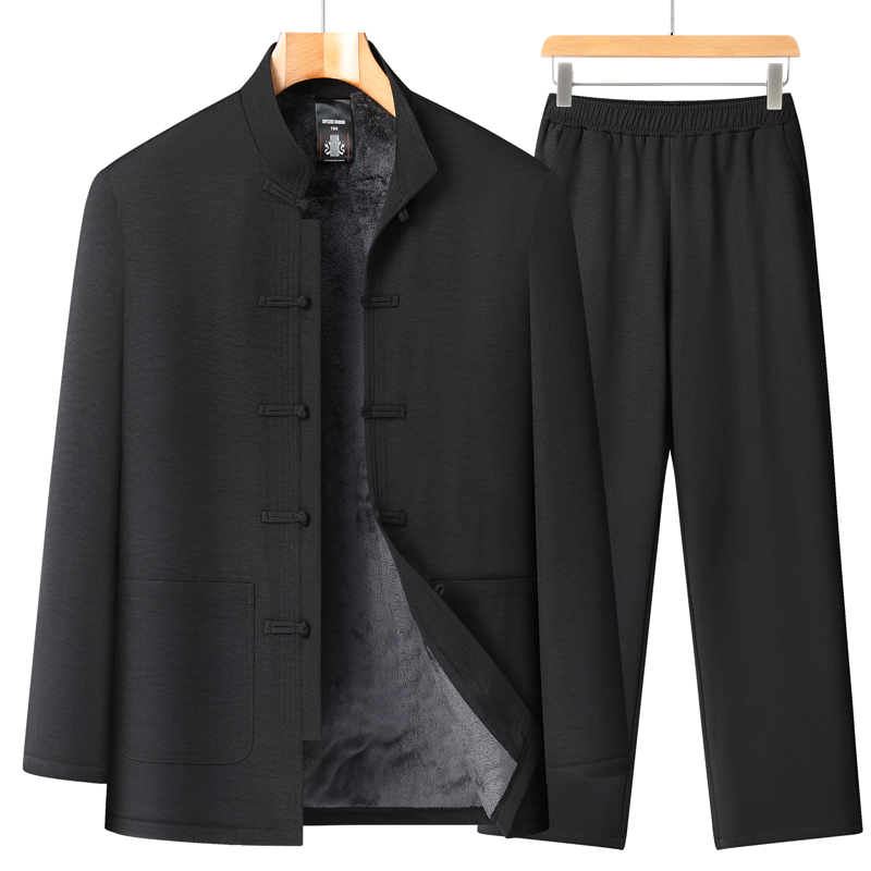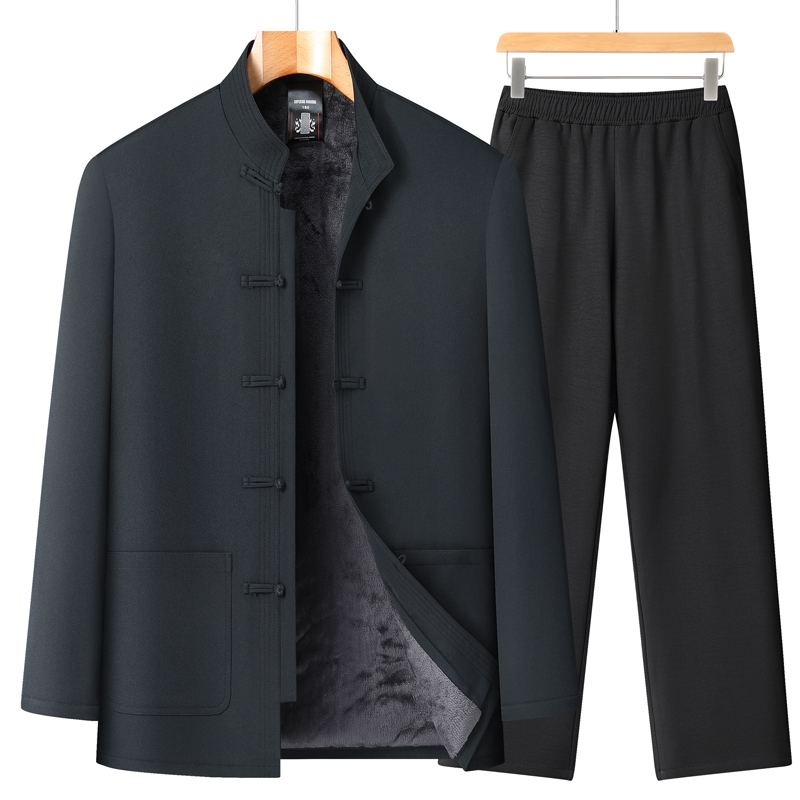 中老年唐装男加绒加厚老人冬季保暖外套中年爸爸棉衣国风爷爷套装