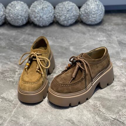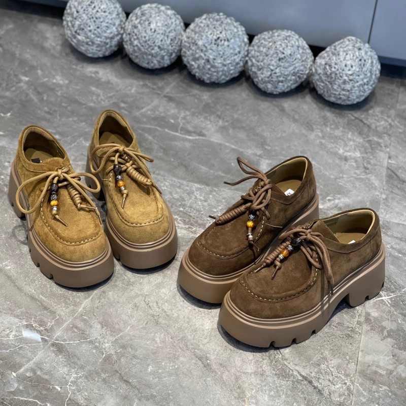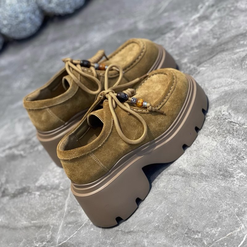 欧洲站2025秋新款松糕厚底复古风小个子袋鼠鞋增高8cm小皮鞋单鞋
