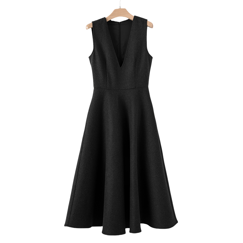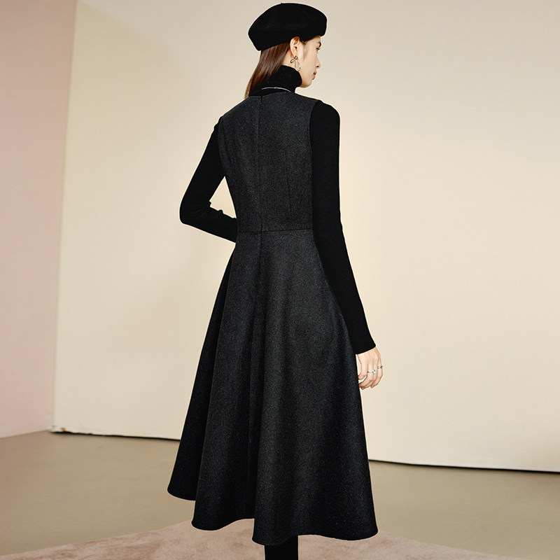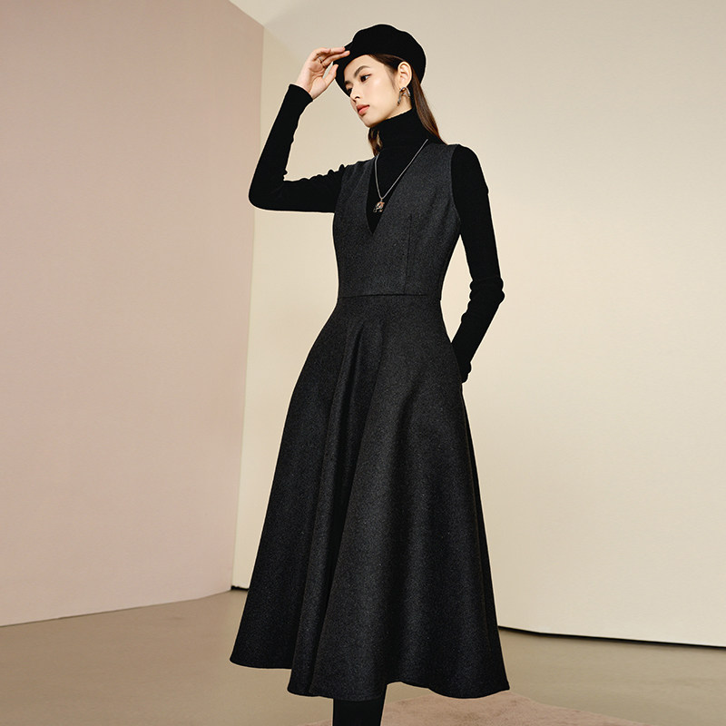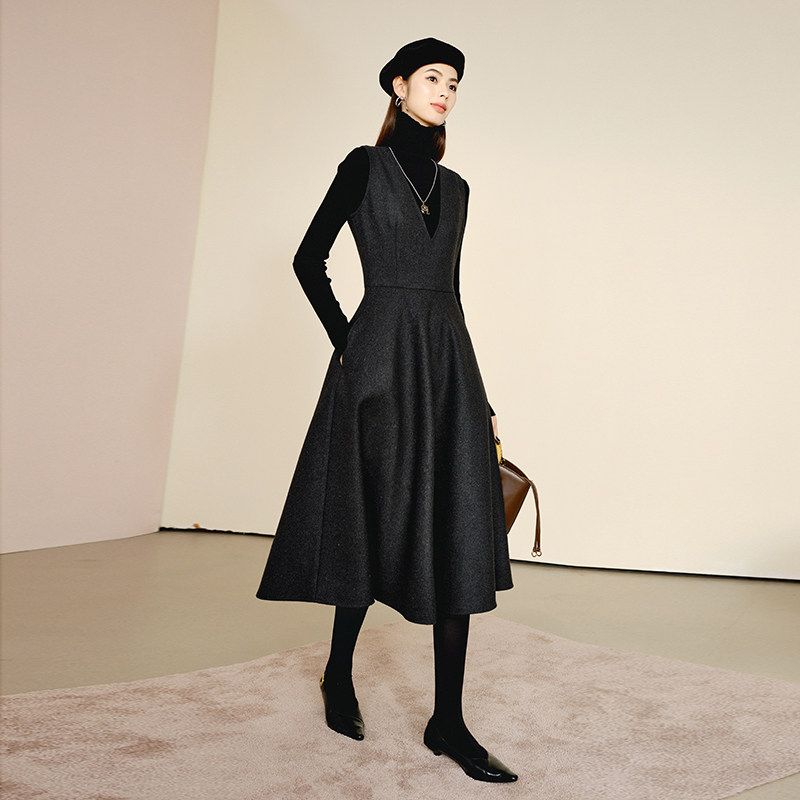 晚白2025秋冬新款气质通勤收腰裙子休闲V领含羊毛背心无袖连衣裙