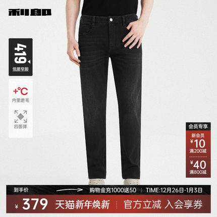 【四面弹】利郎官方 牛仔裤男2025冬季新款休闲男装保暖修身裤子