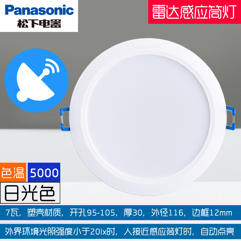 松下雷达感应筒灯嵌入式红外人体感应智能光感家用led天花灯射灯
