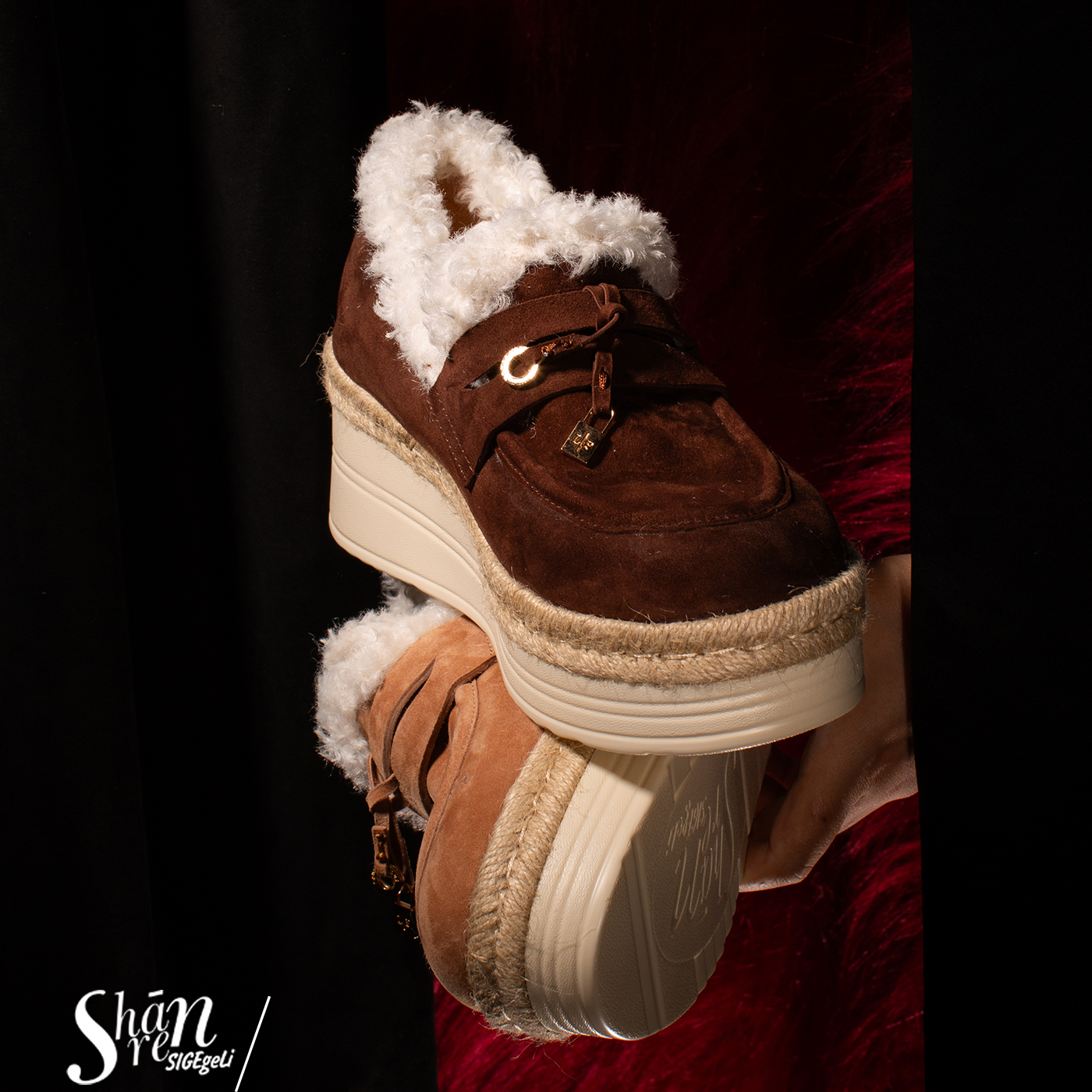 ShānRen厚底增高毛毛乐福鞋女 休闲一脚蹬加绒懒人鞋保暖单鞋女