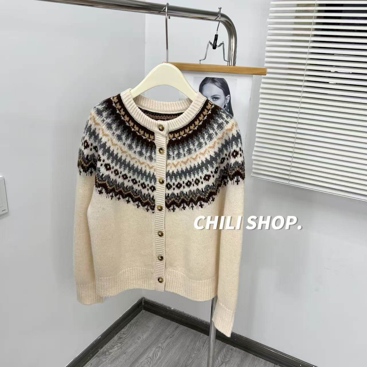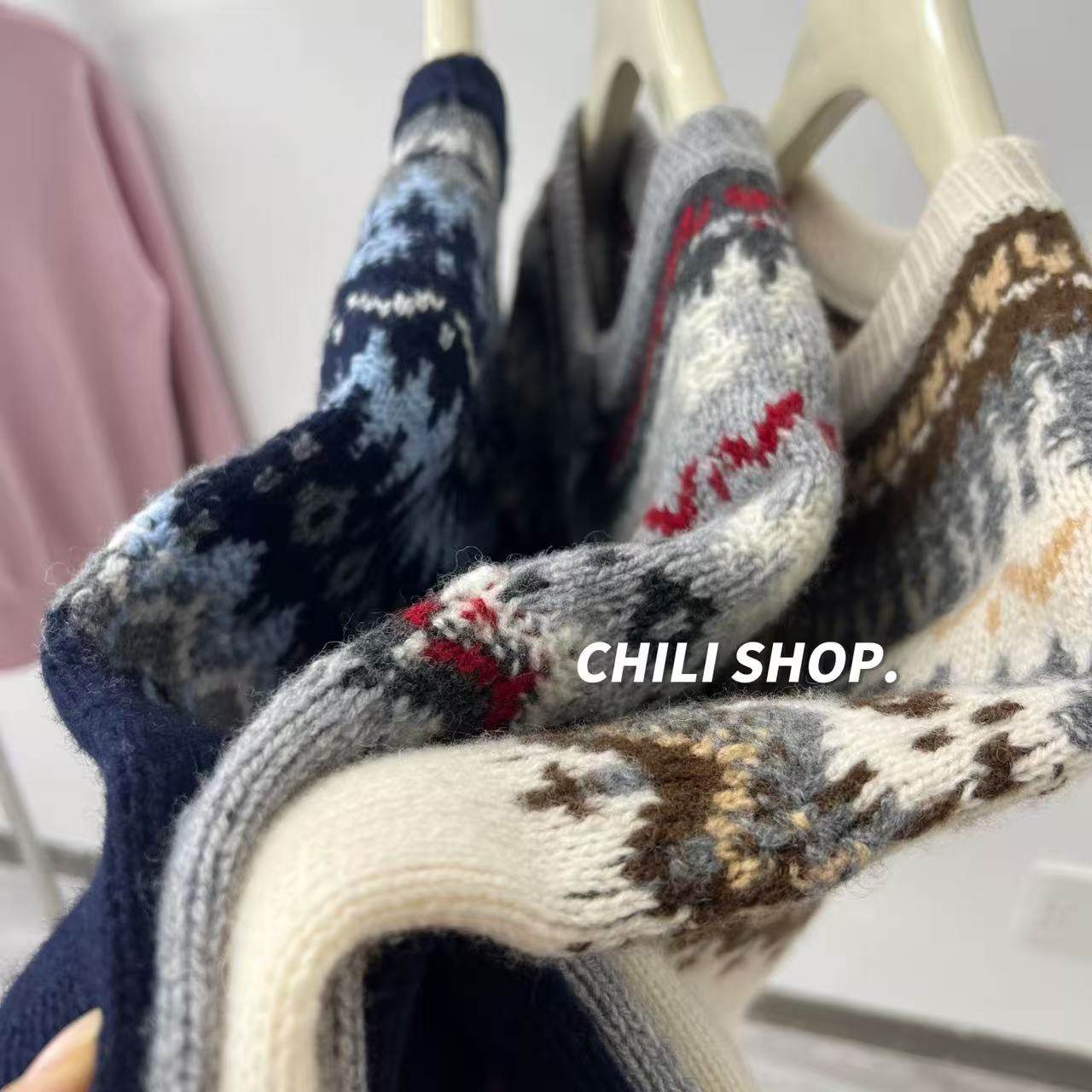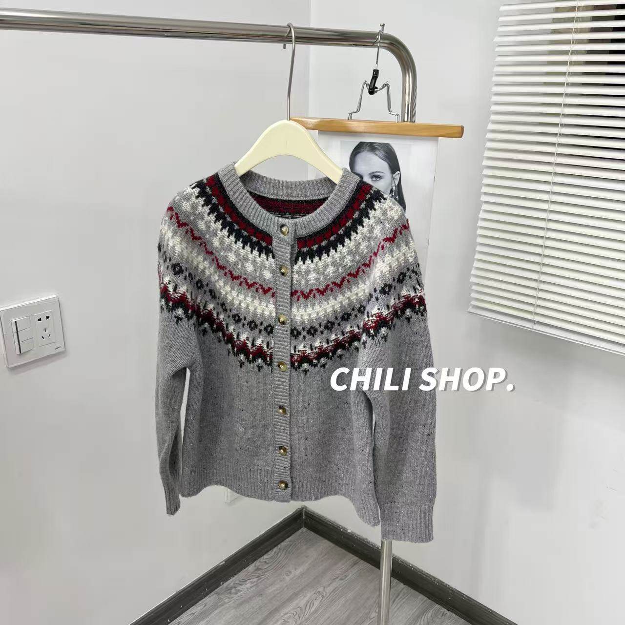 【英英Chili】复古费尔岛风宽松柔软100全羊毛针织开衫H 09.23