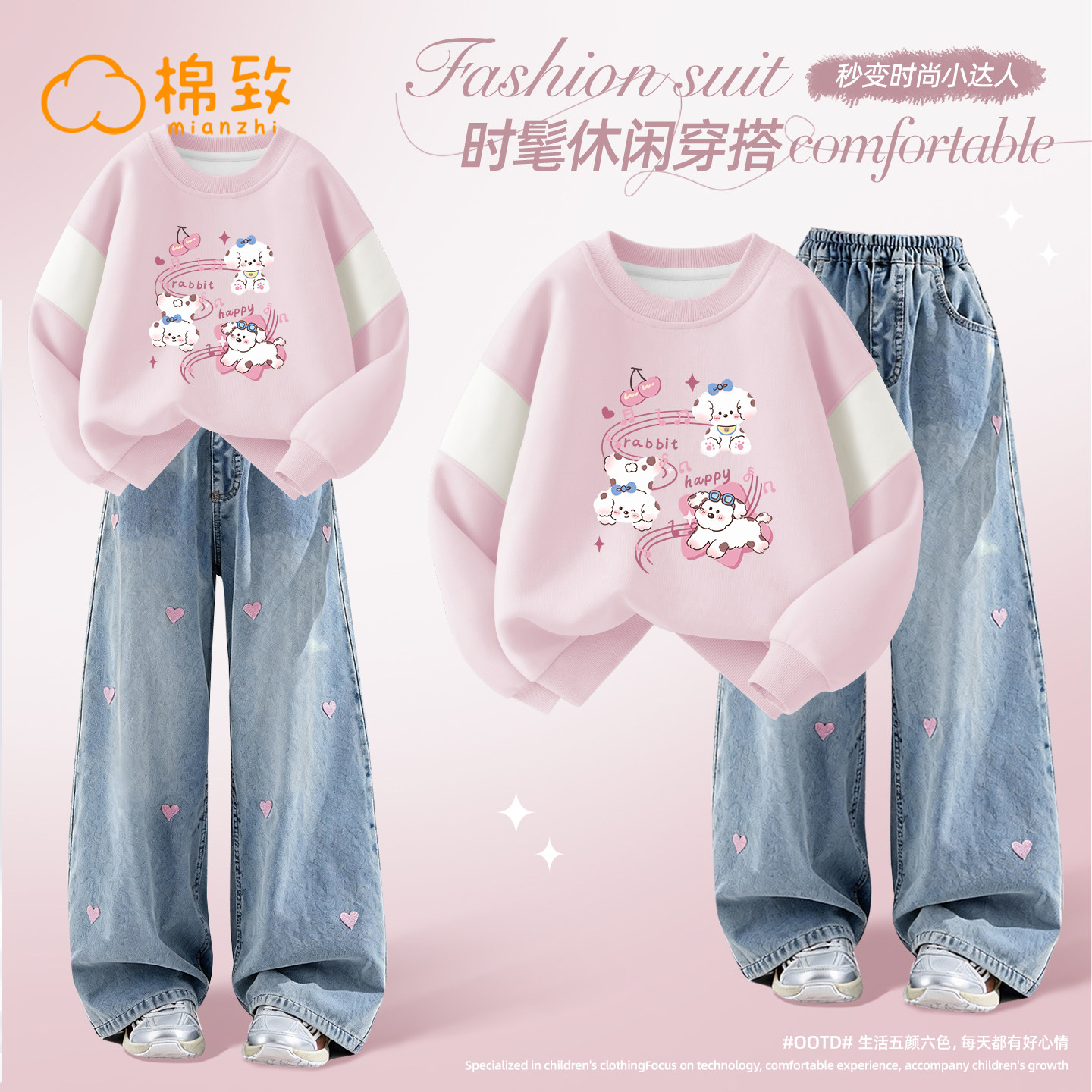 棉致女童春装套装春秋款2026新款春季休闲运动大童卫衣儿童牛仔裤