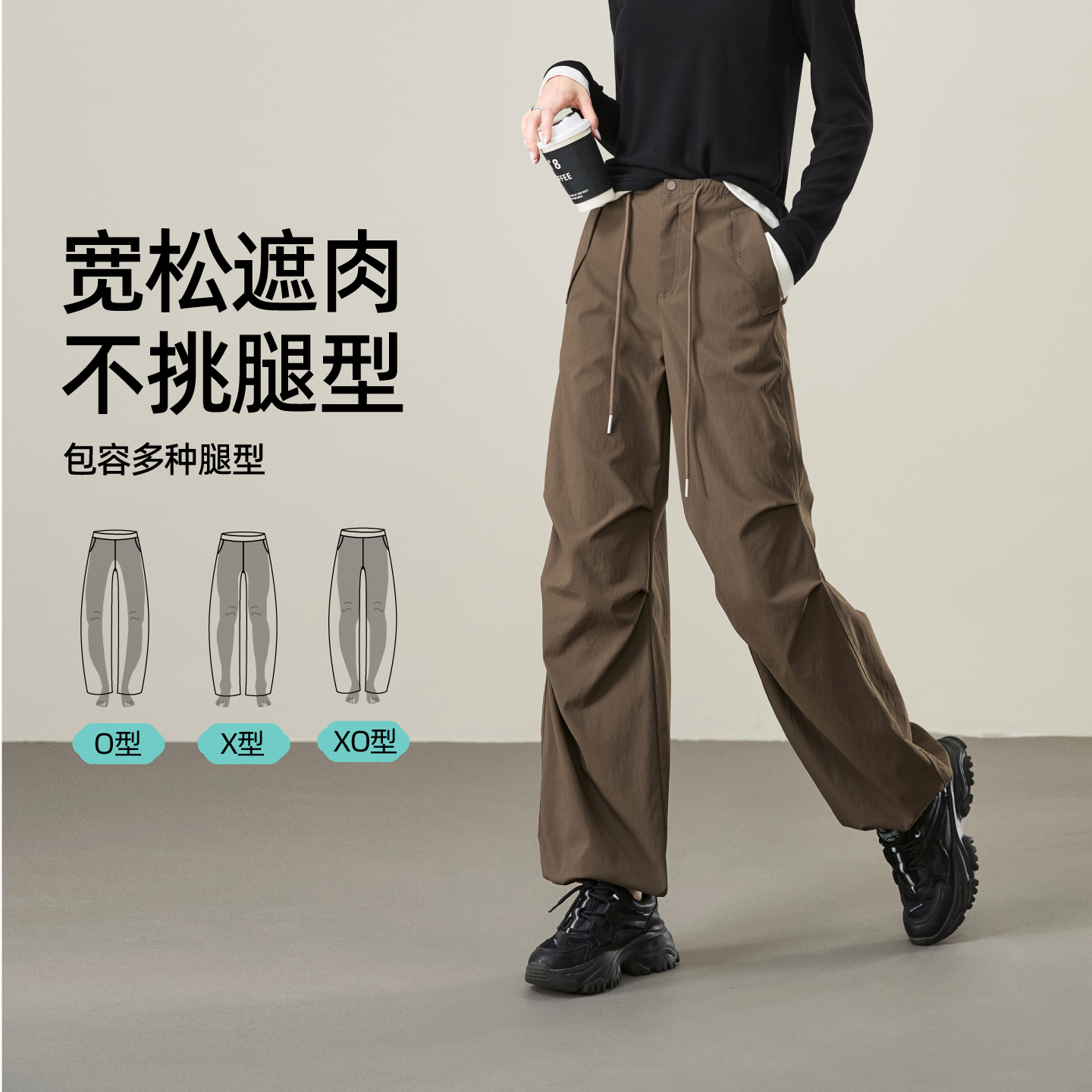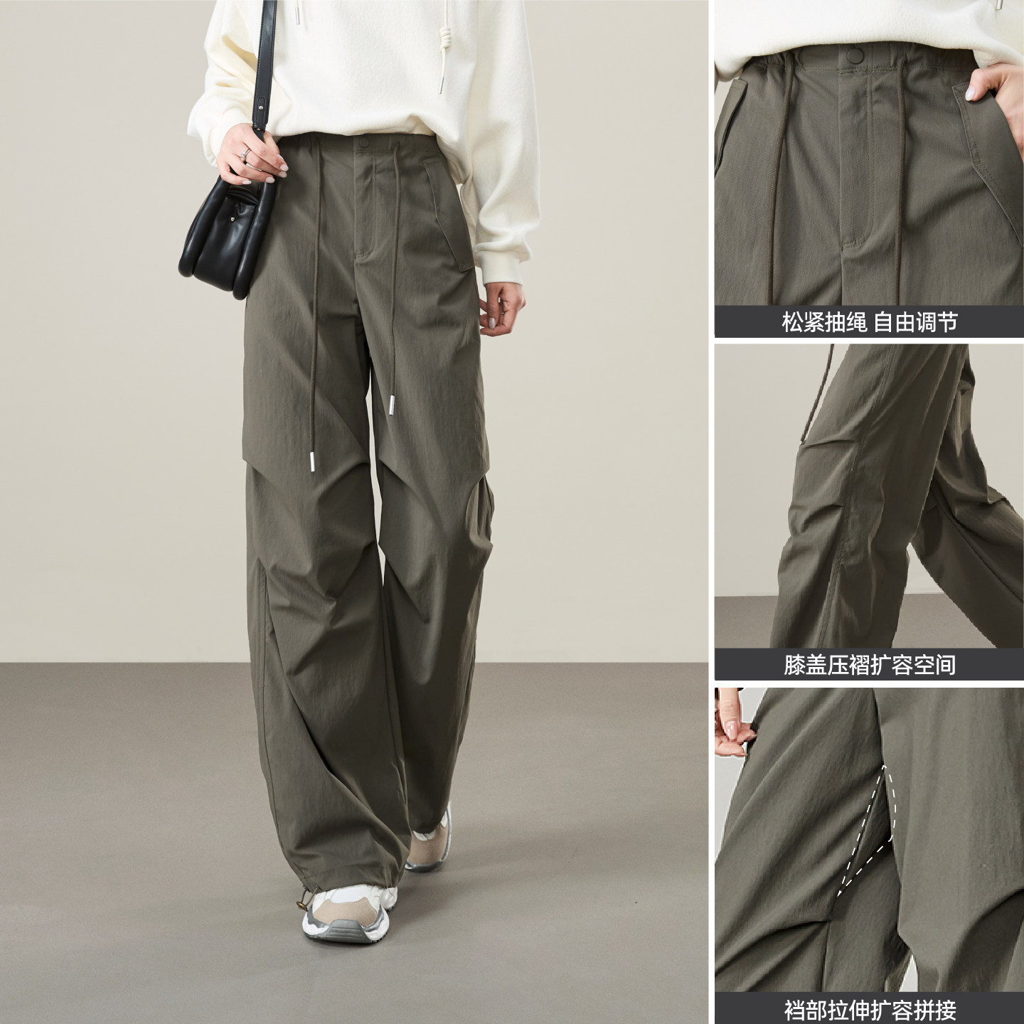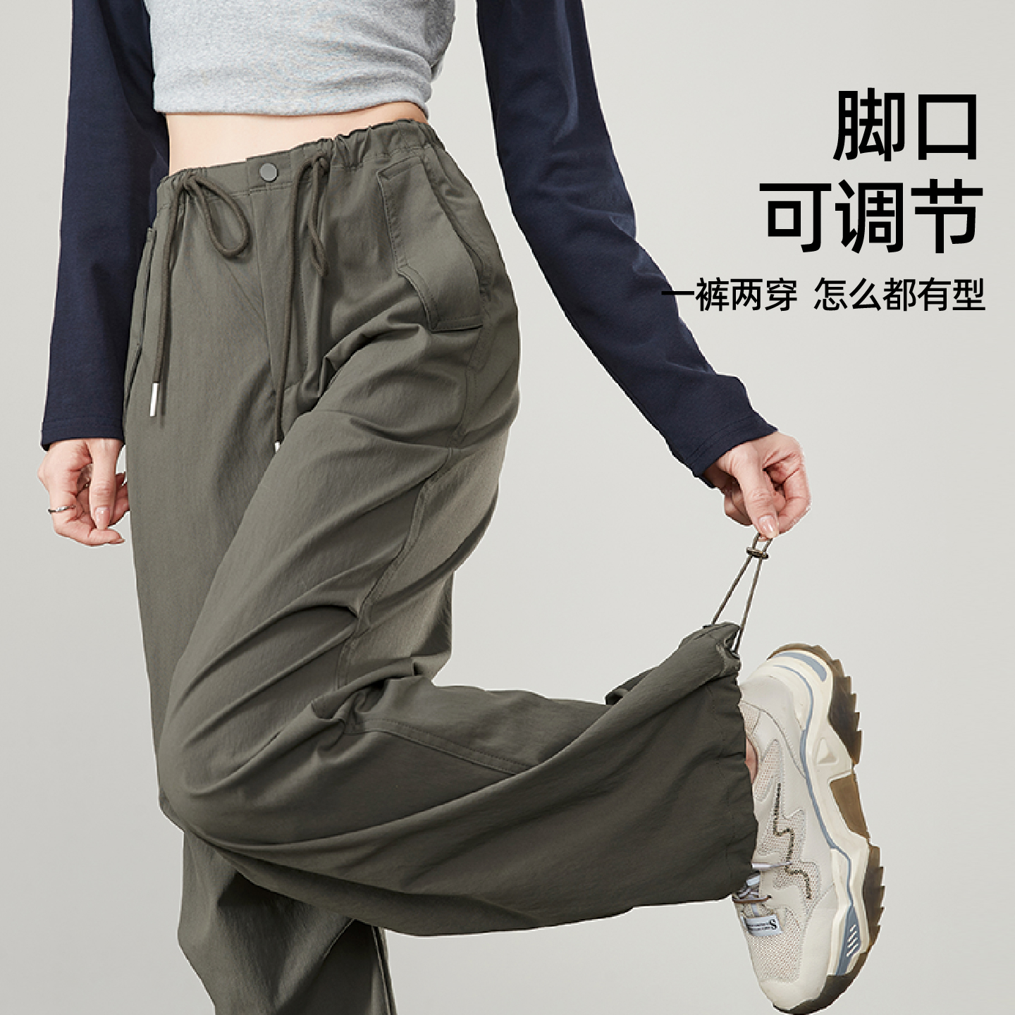 逸阳高腰运动休闲显瘦工装伞兵裤