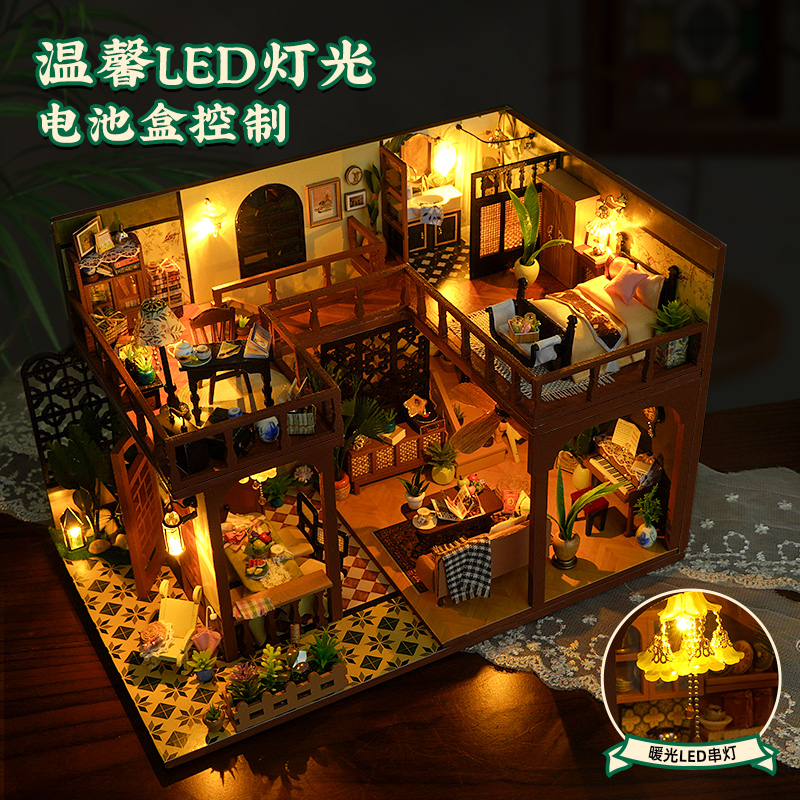 diy小屋别墅手工拼装迷你房子微缩模型积木立体拼图玩具生日礼物