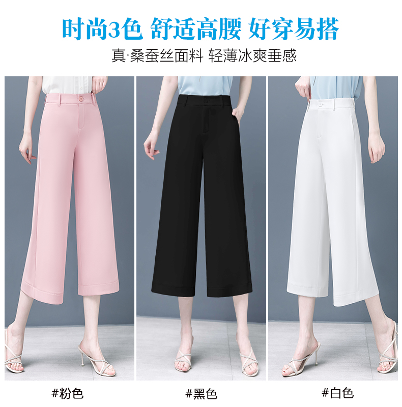 白色七分阔腿裤女垂感夏季薄款冰丝小个子八分宽松直筒西装休闲裤