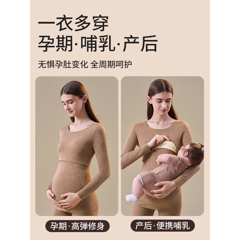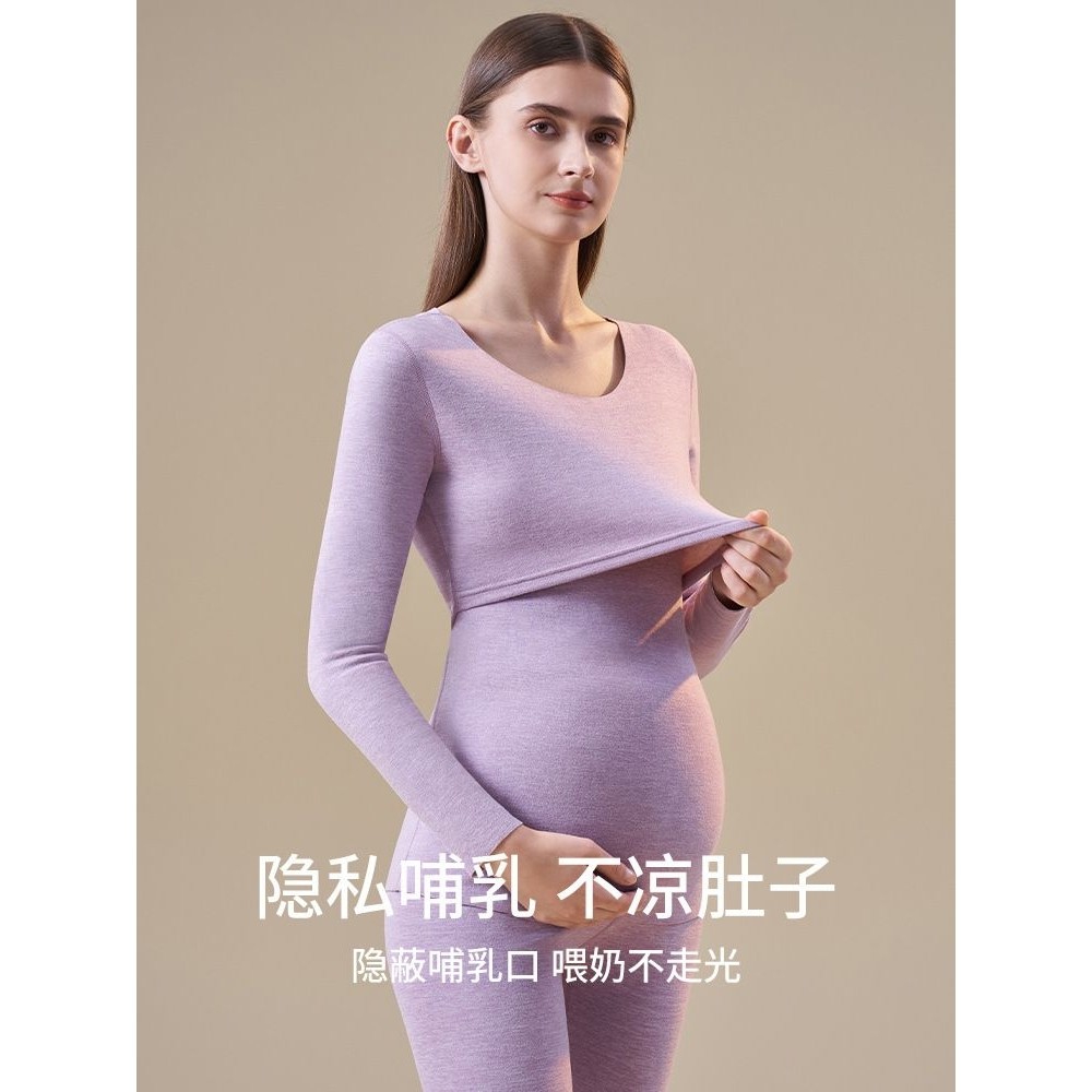 罗丽丝孕妇秋衣秋裤套装女产后哺乳喂奶德绒保暖内衣秋冬大码月子