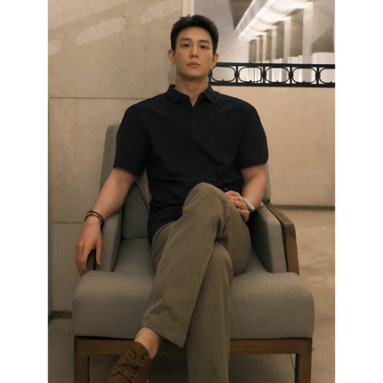 黑色高级感痞帅短袖polo衫男款