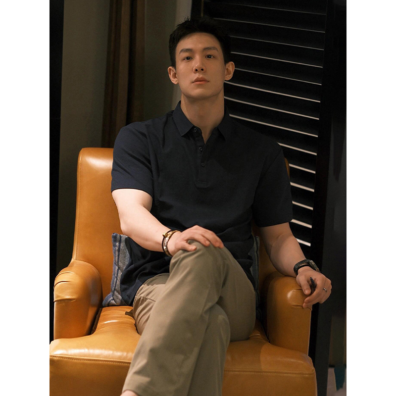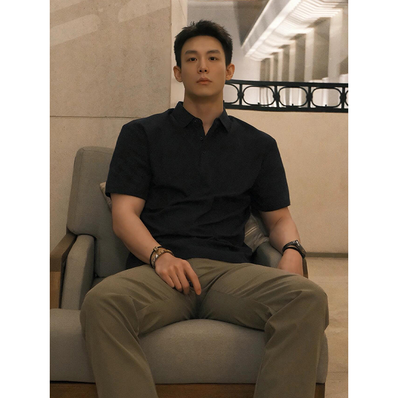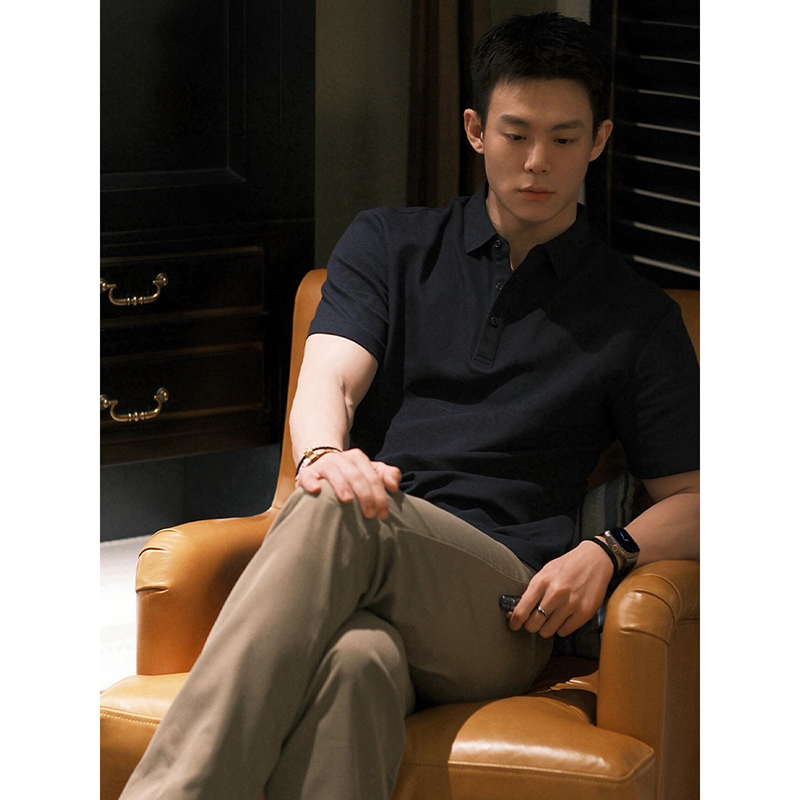 黑色高级感痞帅短袖polo衫男款夏季成熟稳重正肩t恤重磅翻领半袖
