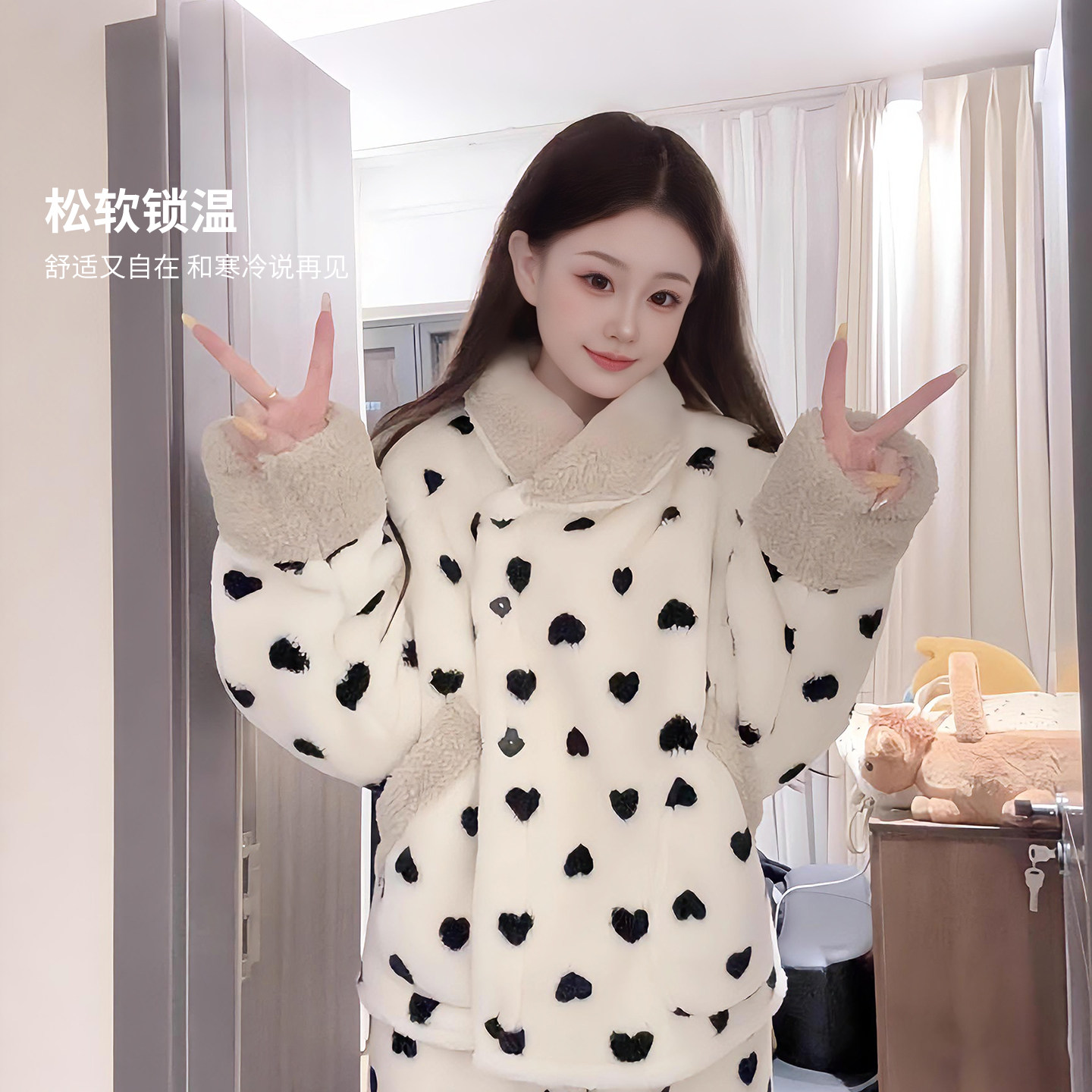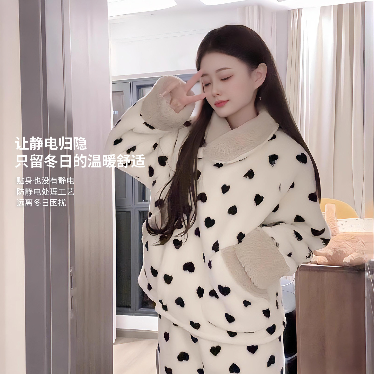摇粒绒睡衣女冬可爱加厚加绒保暖休闲珊瑚绒外穿韩版甜美网红家居