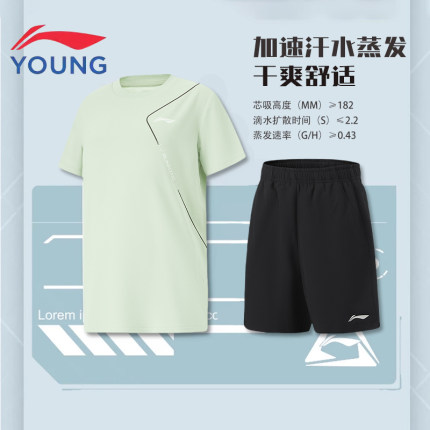 李宁儿童男大童运动套装2025夏季凉爽速干弹力短袖短裤两件套童装