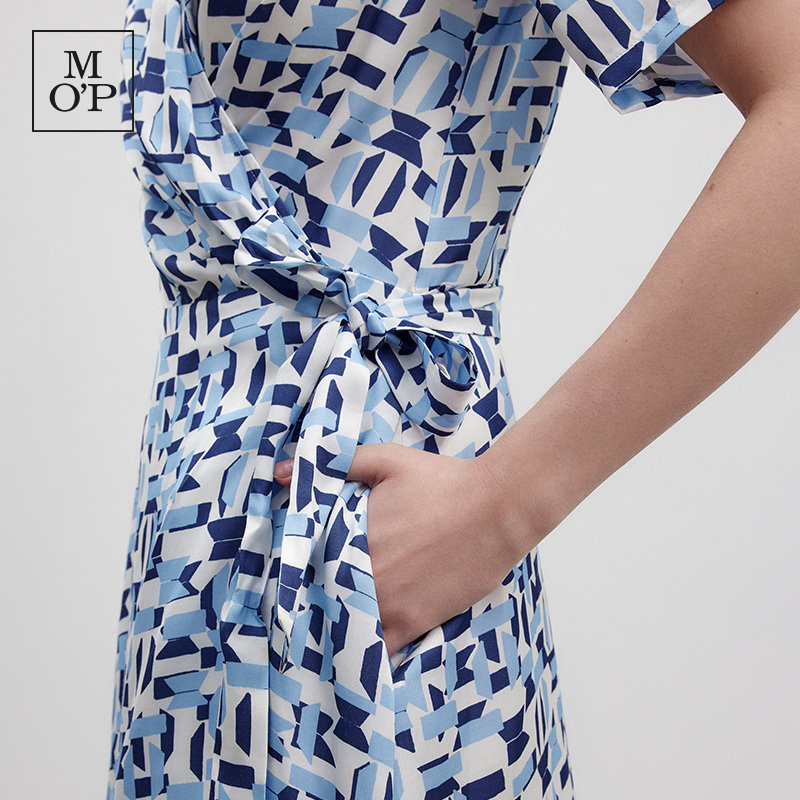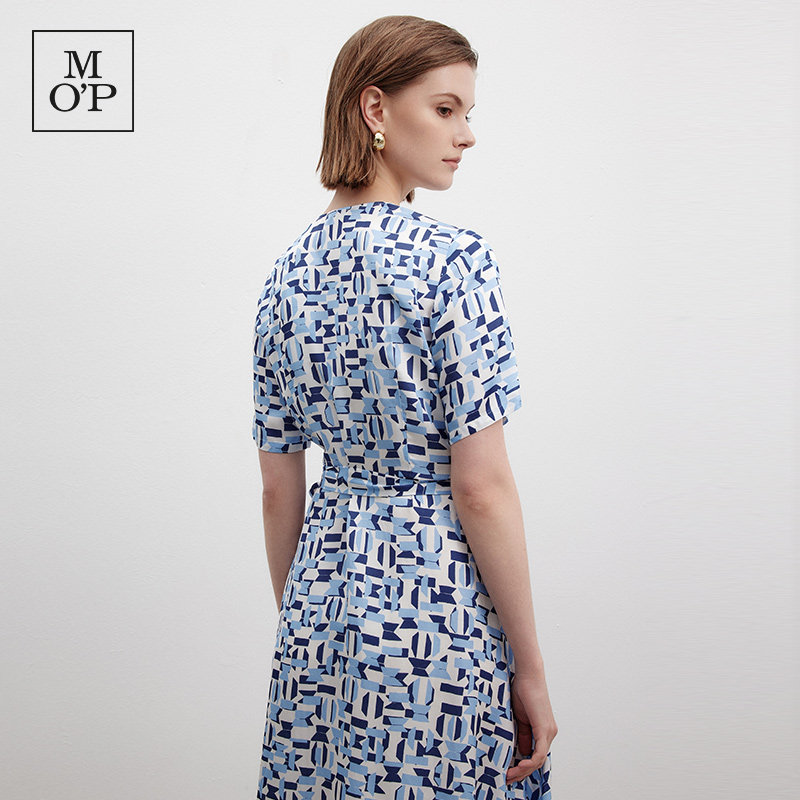 Marc O'Polo/MOP2025夏季新款印花时尚V领茶歇裙显瘦收腰连衣裙女