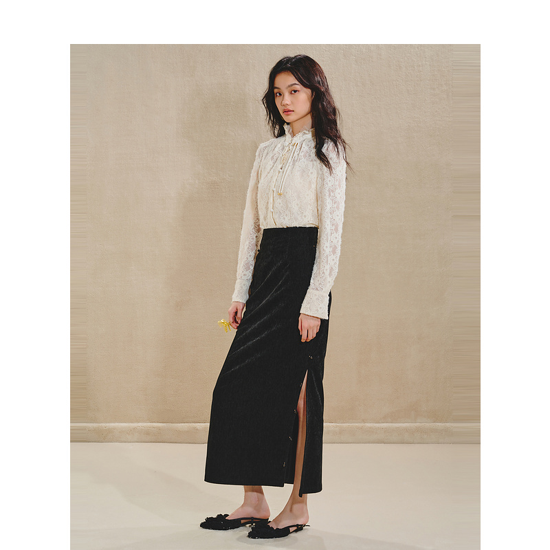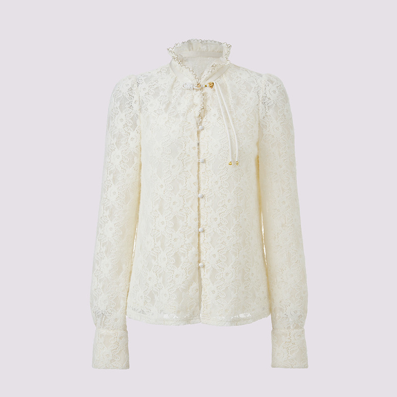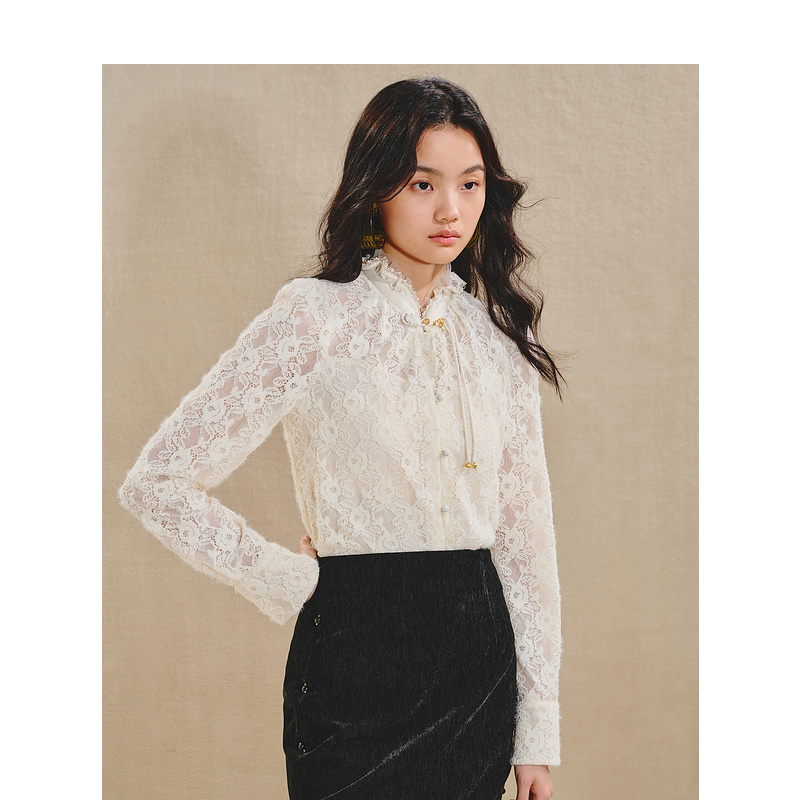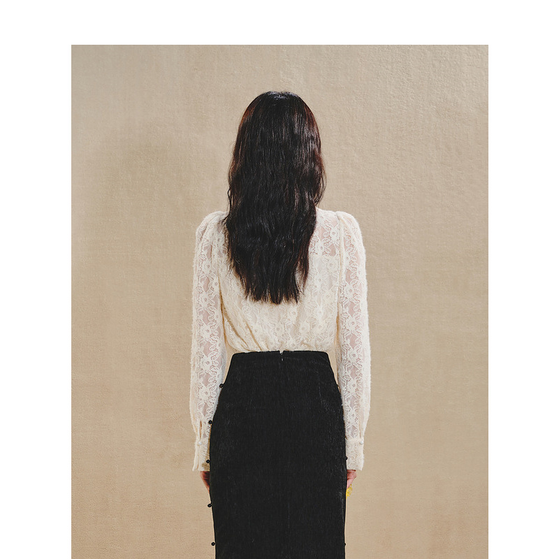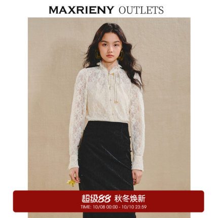 【奥莱】MAXRIENY清雅蕾丝上衣宫廷复古风蕾丝雪纺衬衫女