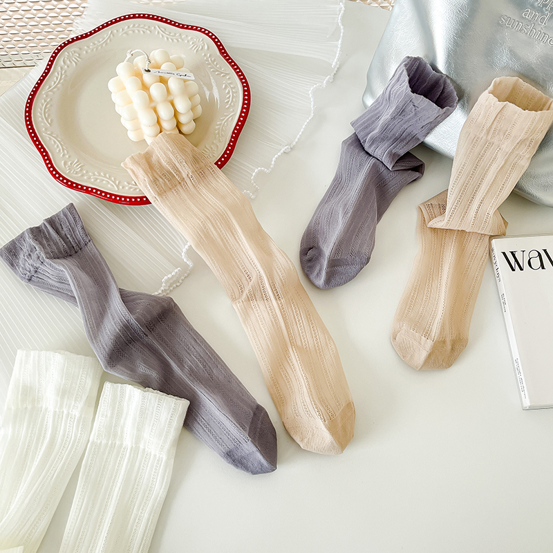 2025新款爆款袜子女夏天薄款芭蕾风堆堆袜女镂空丝袜中筒白袜子