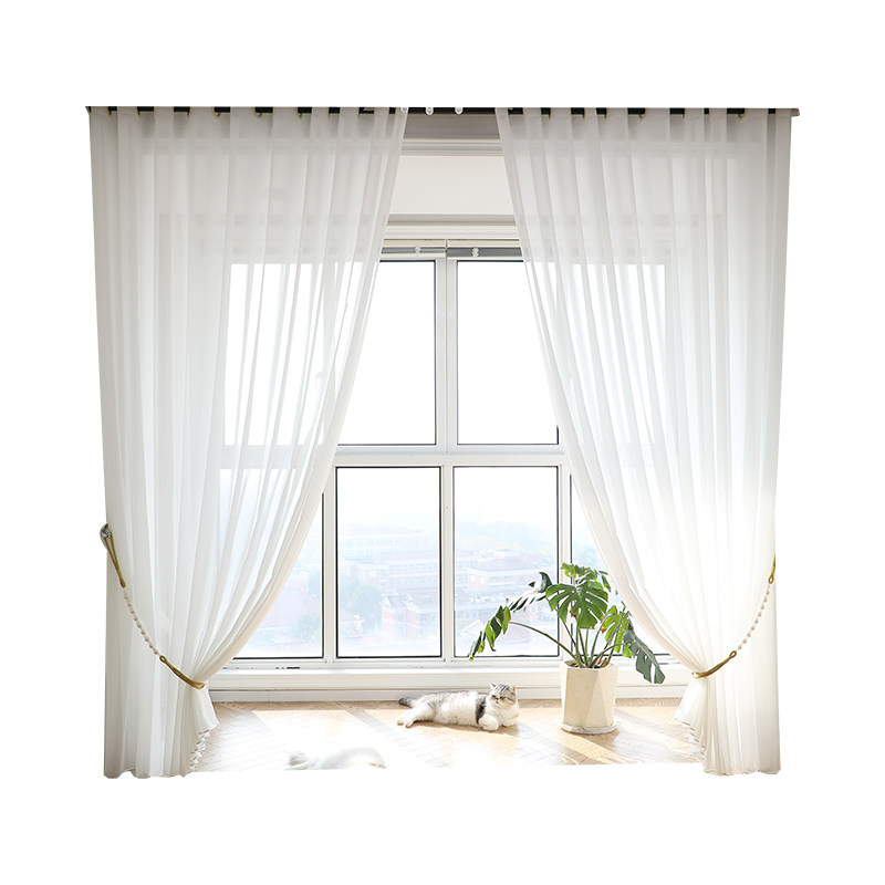 日式白纱窗帘纱帘透光不透人客厅卧室阳台飘窗隔断垂感金刚纱防刮