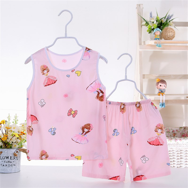儿童棉绸睡衣男童女童宝宝短袖短裤绵绸夏天小孩男孩无袖背心套装