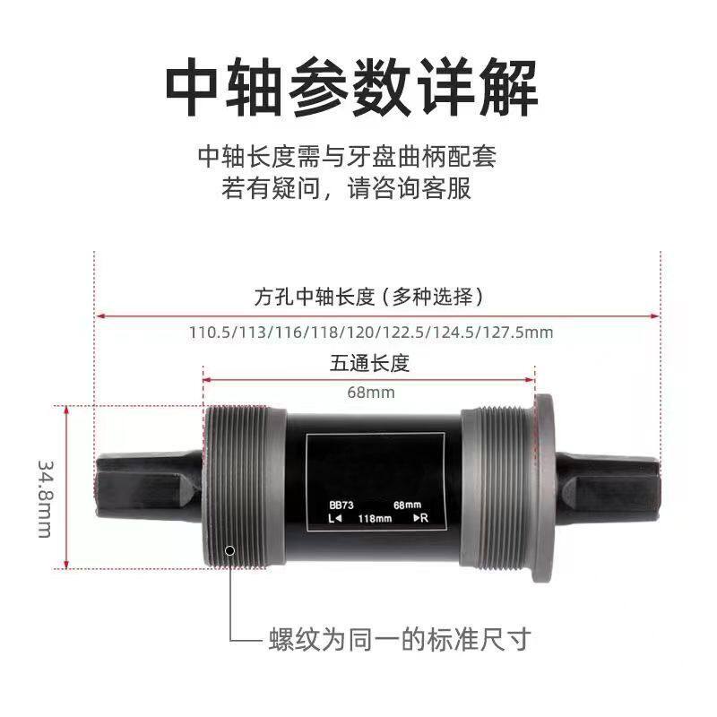 山地公路自行车方孔中轴死飞培林轴承总成26寸通用配件车轴螺丝