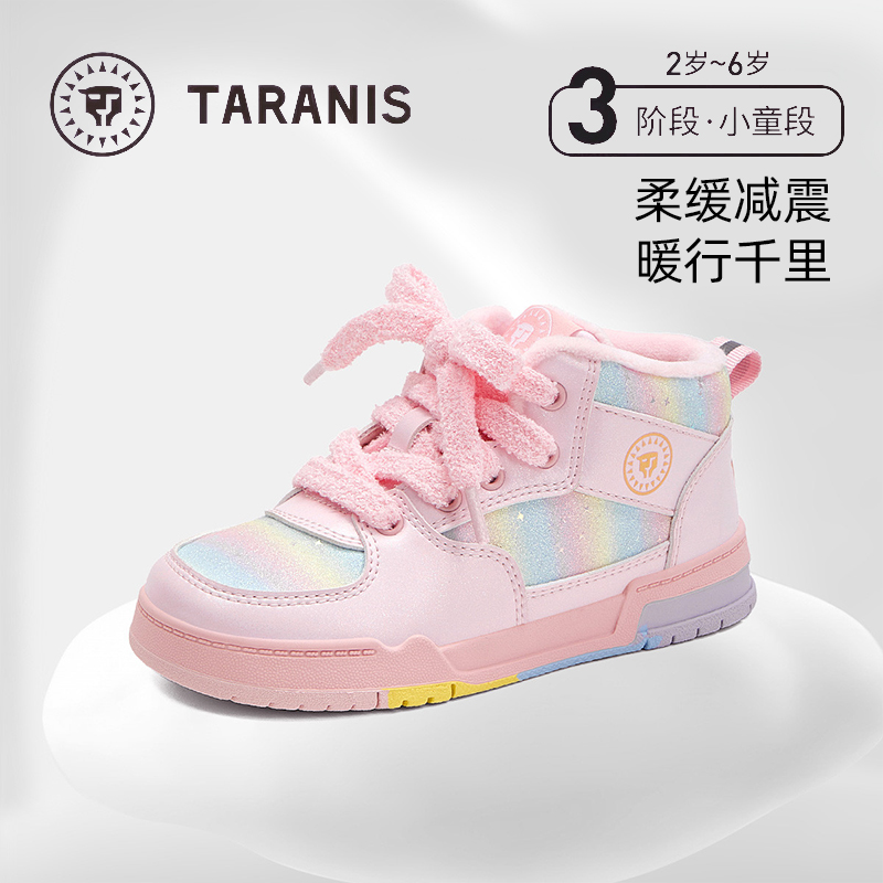 泰兰尼斯冬季新款儿童运动鞋女童加绒保暖板鞋男童校园运动鞋棉鞋