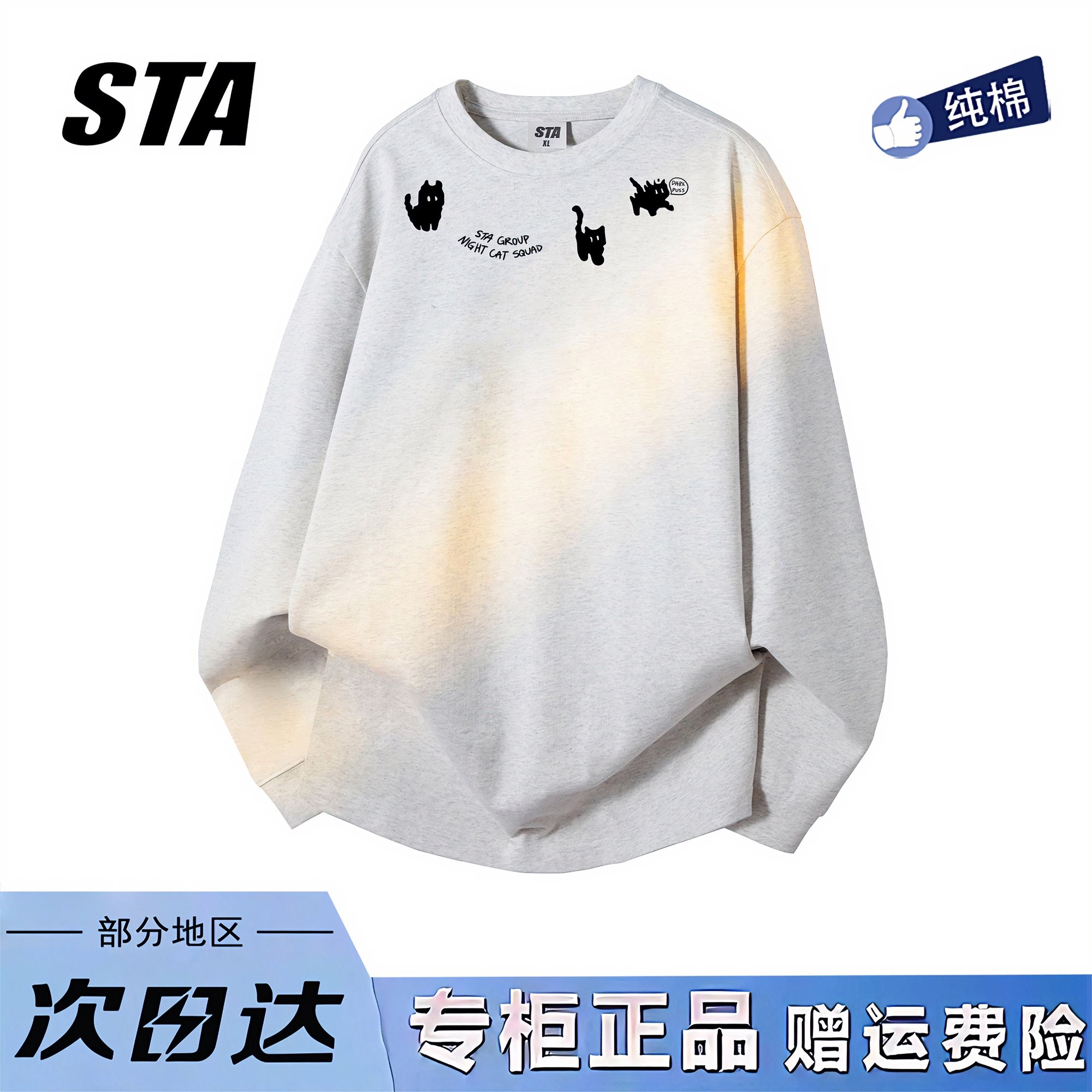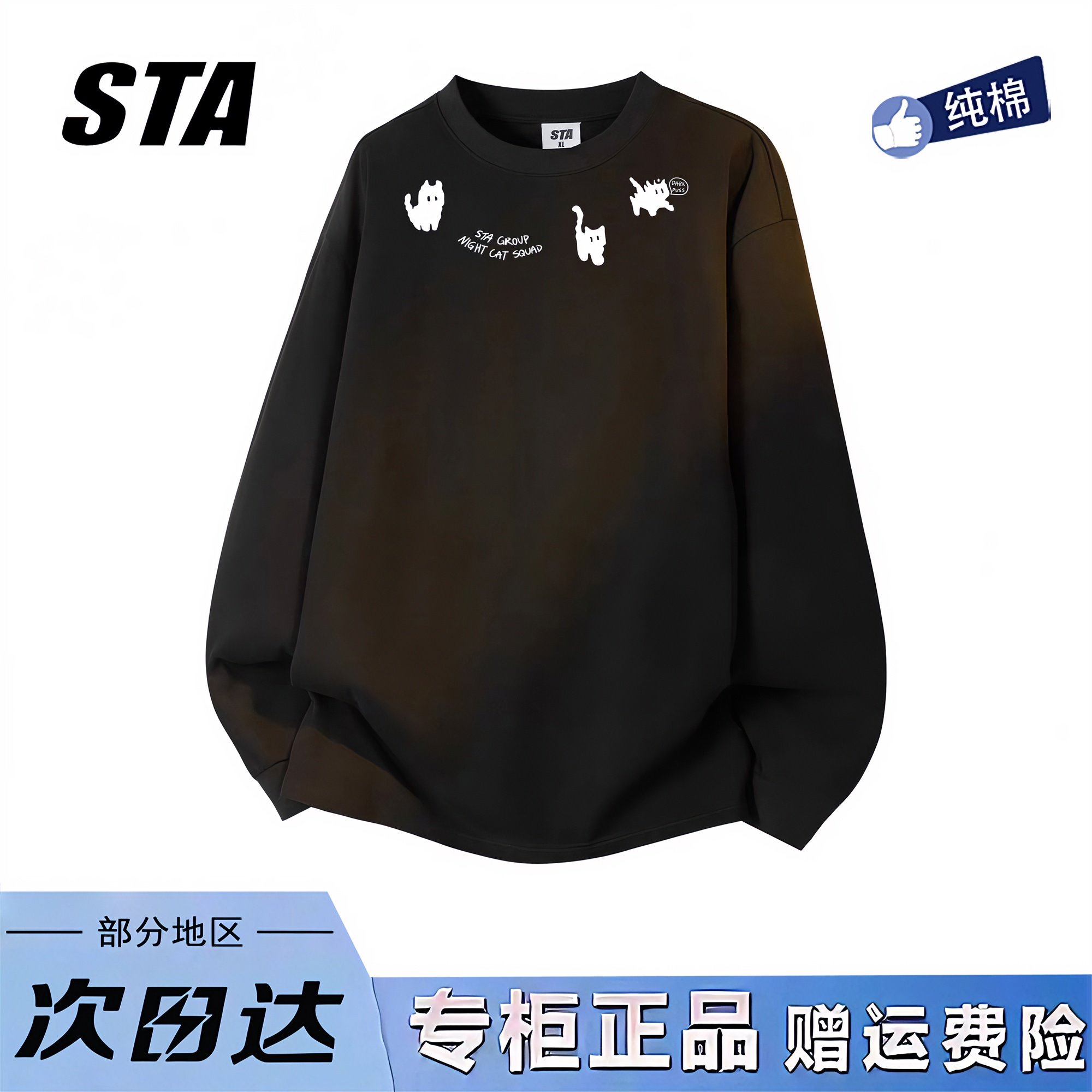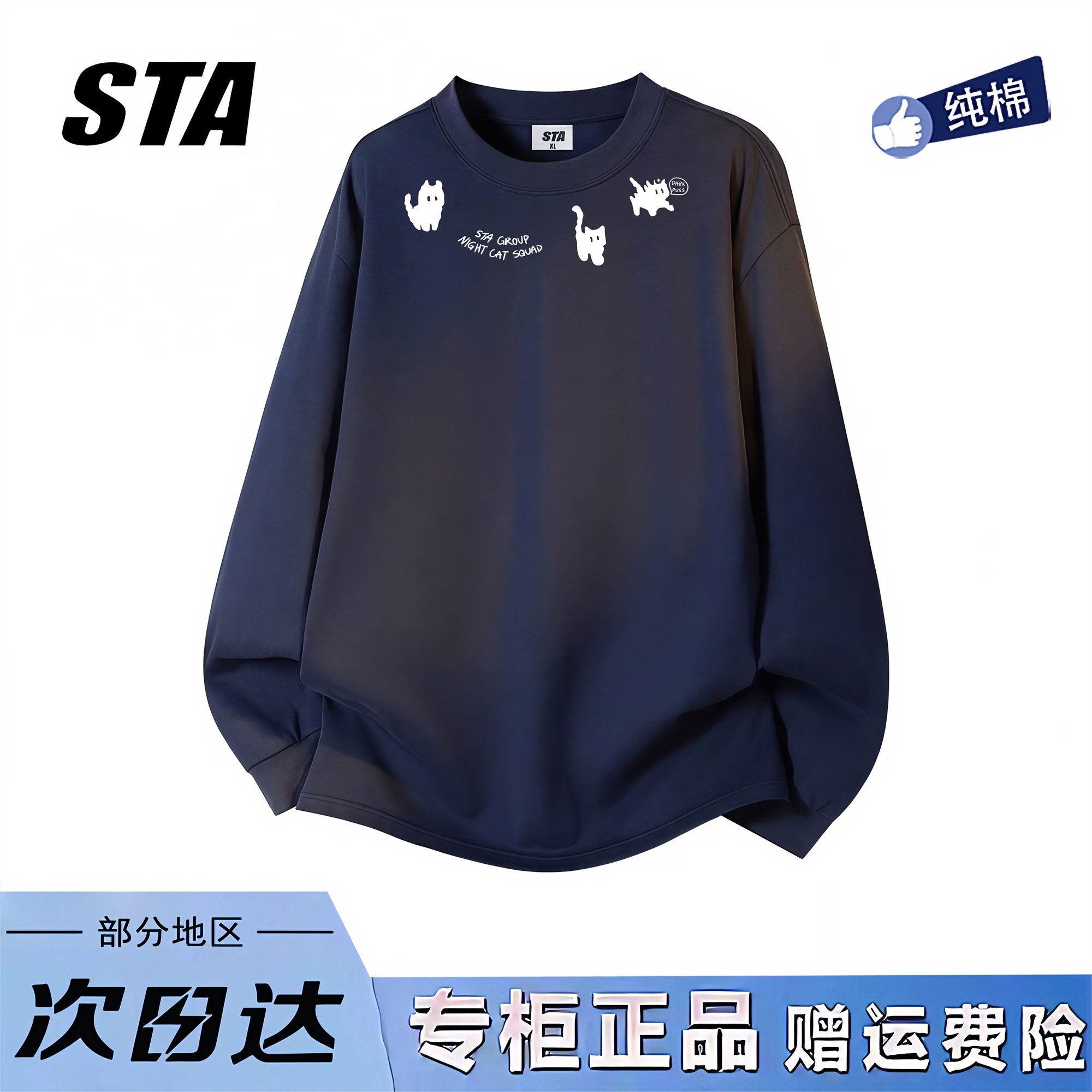 STA旗舰店美式潮牌重磅纯棉长袖男女新款复古宽松圆领打底卫衣