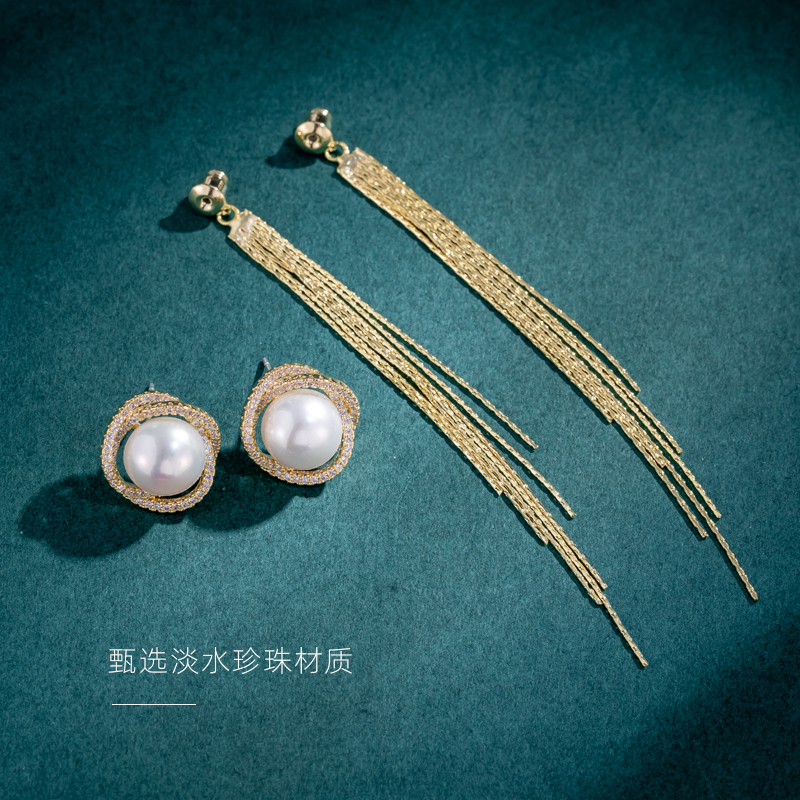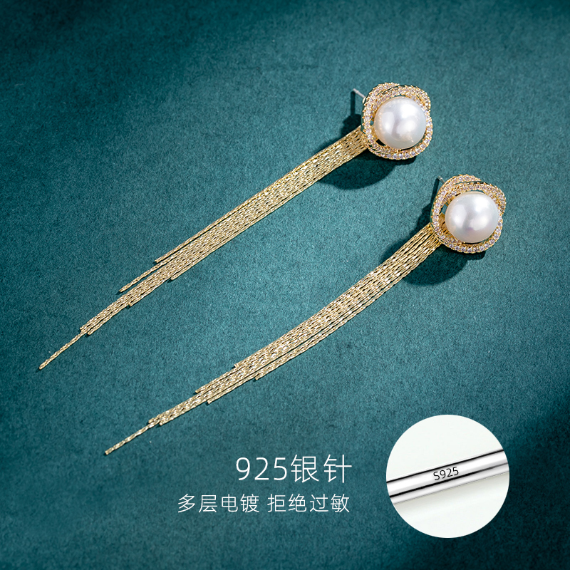 珍珠耳饰耳钉女纯银耳环2025新款爆款小众高级感轻奢长款流苏耳坠