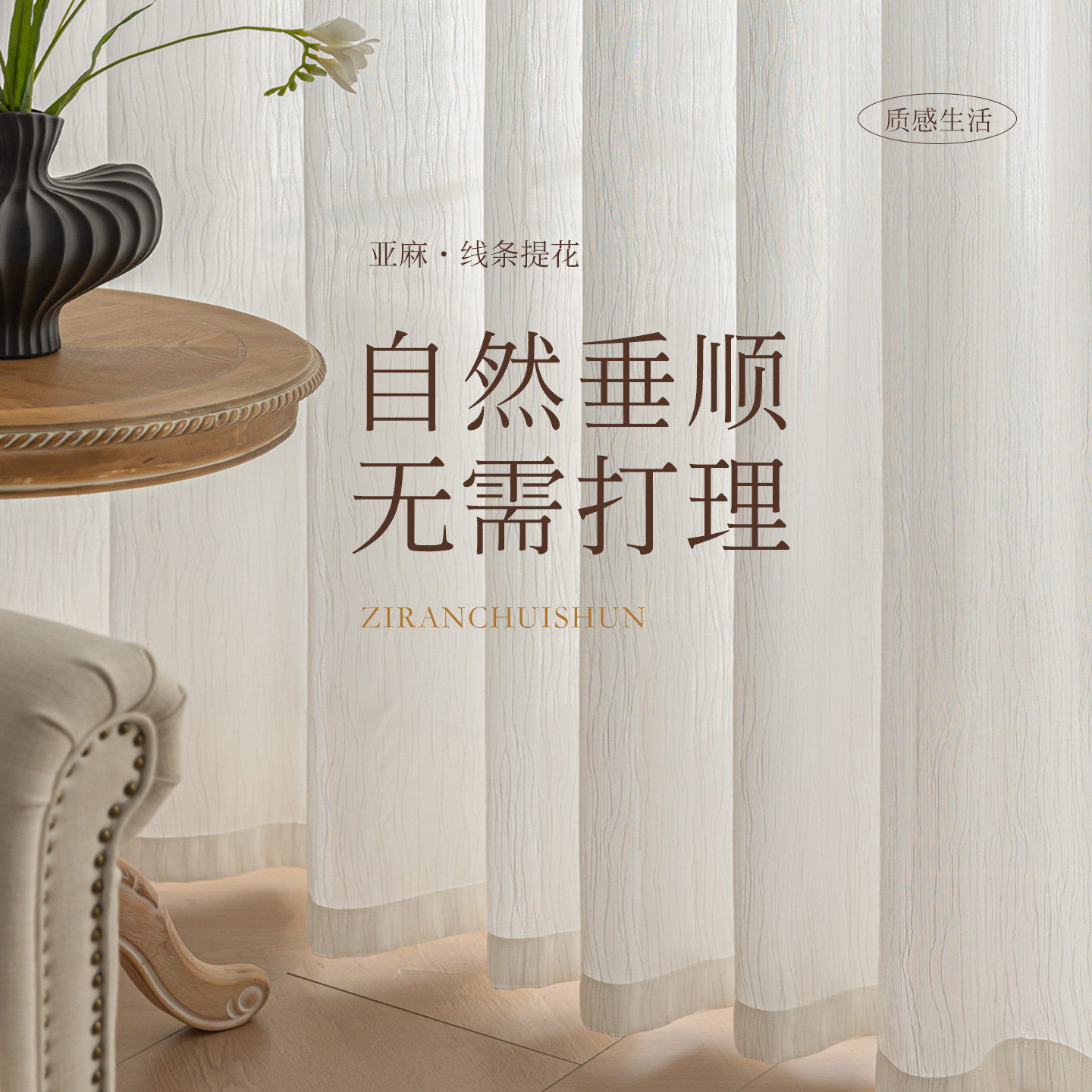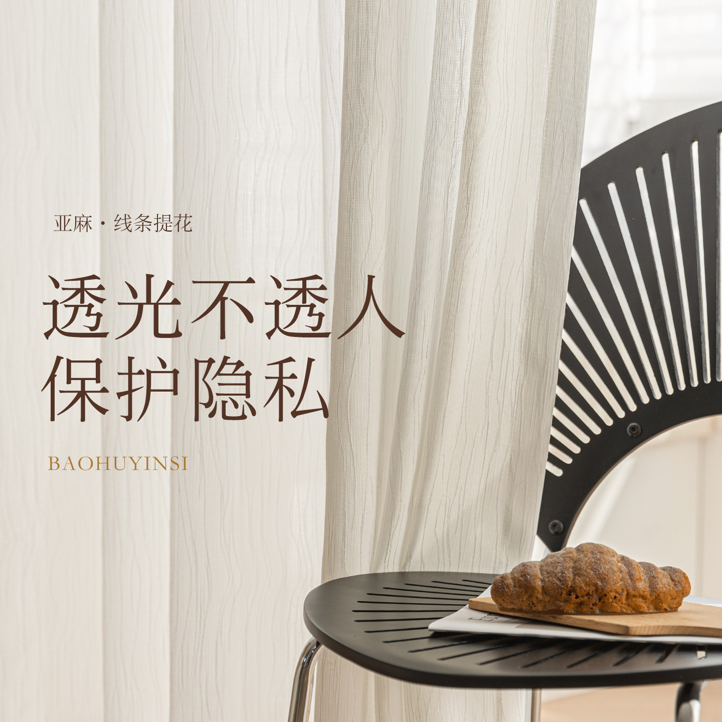 中古风窗纱纱帘扶风纱2025新款窗帘透光不透人客厅阳台高级感亚麻