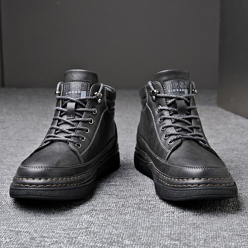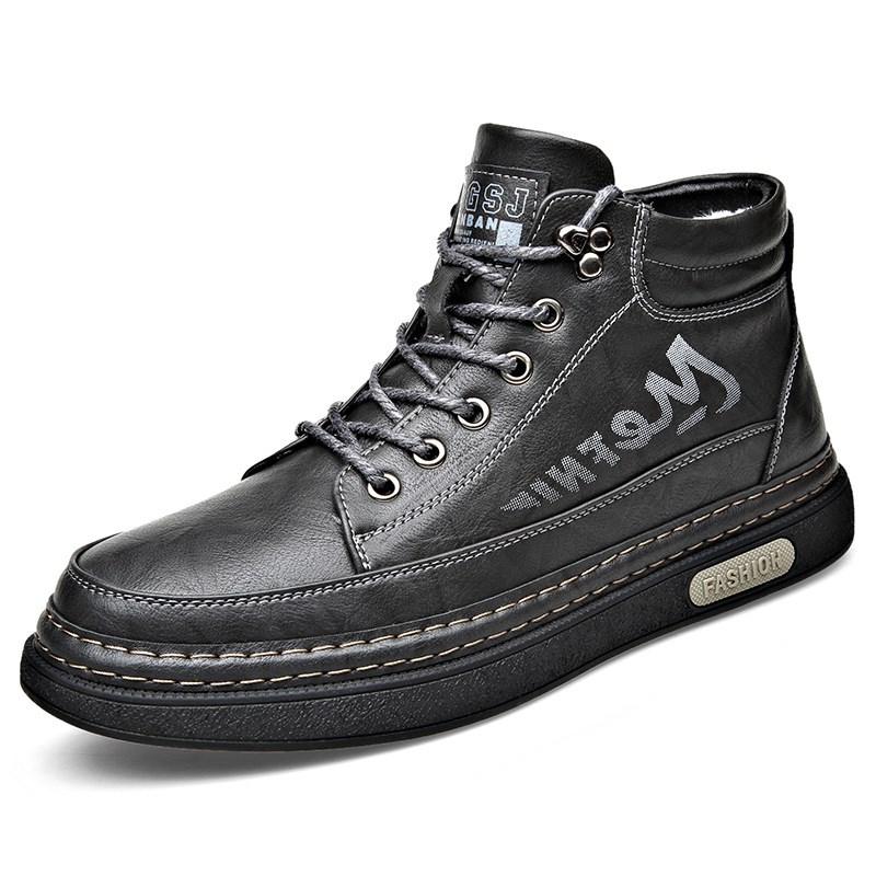 2024冬季新款加绒加厚棉鞋保暖皮鞋男鞋真皮休闲高帮鞋子男马丁靴