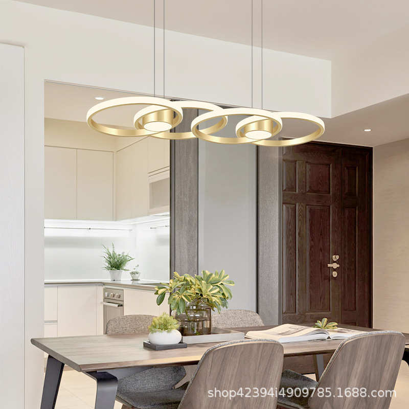 餐厅吊灯现代简约北欧风格金色铝材大气家用创意个性餐桌吧台灯具