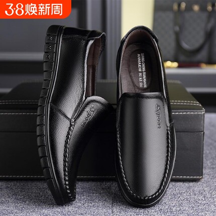 春秋透气男鞋软皮软底休闲皮鞋男防滑防水工作鞋爸爸鞋黑色牛皮
