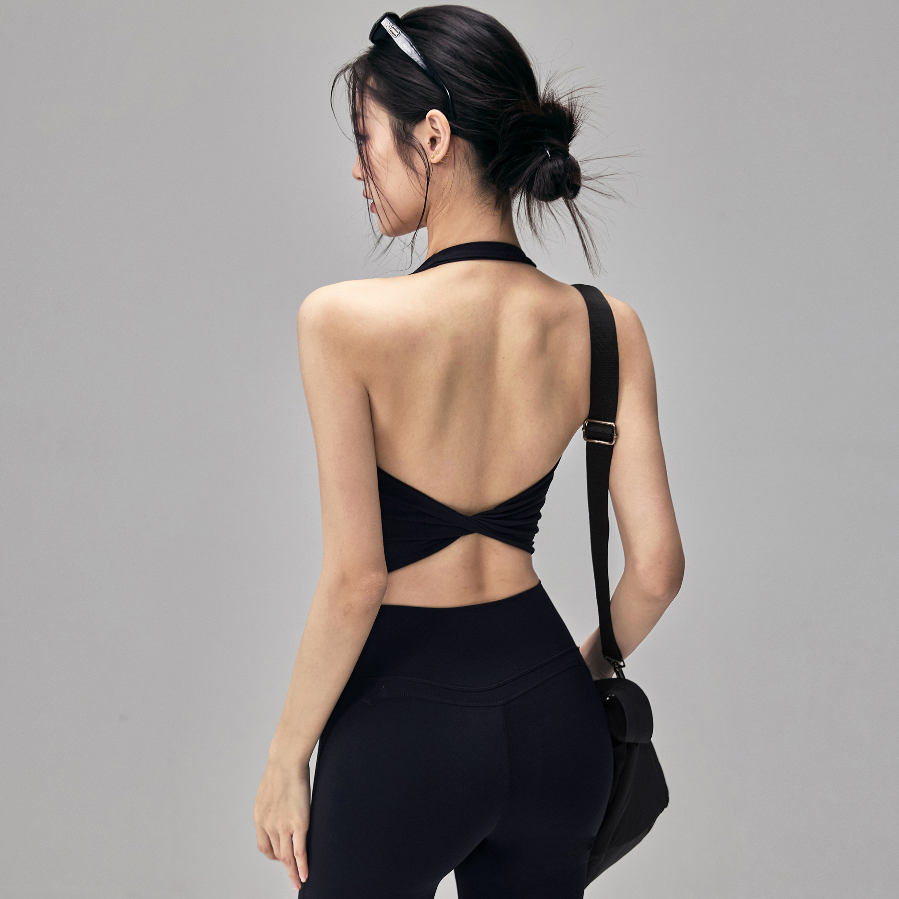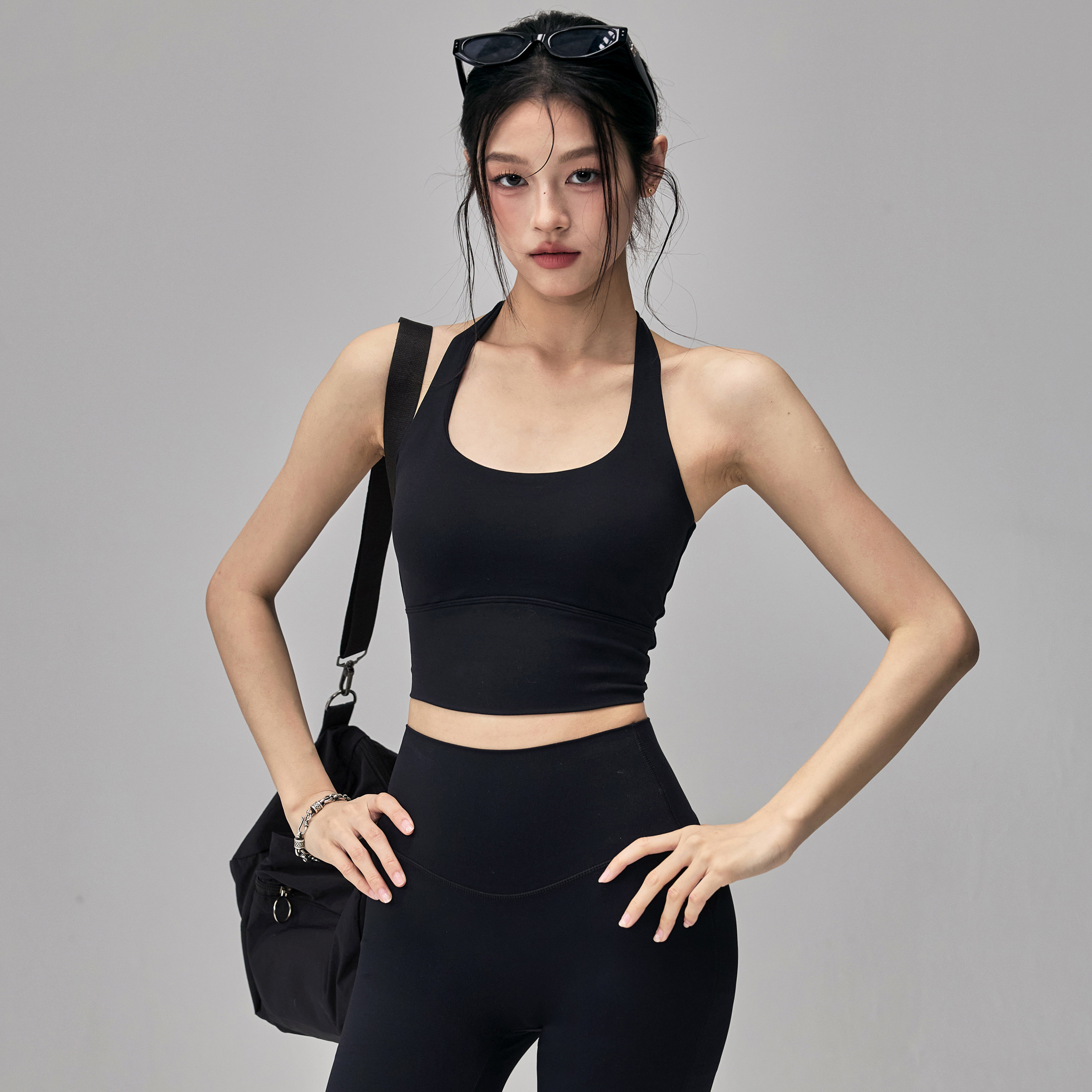 健身女孩挂脖运动内衣一体式美背外穿瑜伽背心防震跑步普拉提文胸