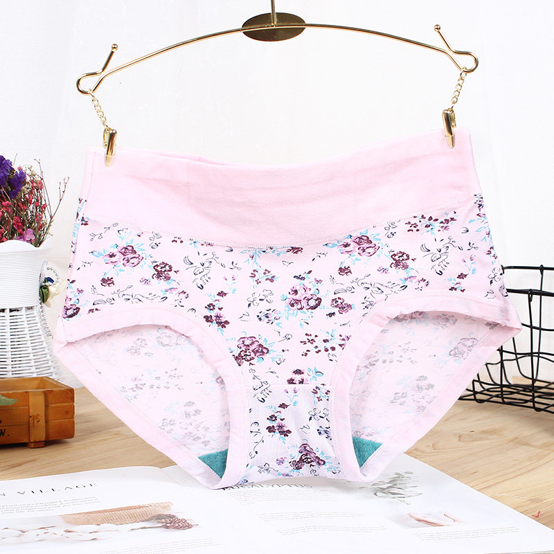 AB内衣女士抗菌纯棉内裤印花弹力棉收腹型束腹高腰小平角短裤0118