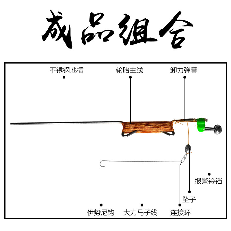 新款自动钓鱼神器带弹簧手线地插线组套装不锈钢插针黑鱼鲶鱼甲鱼