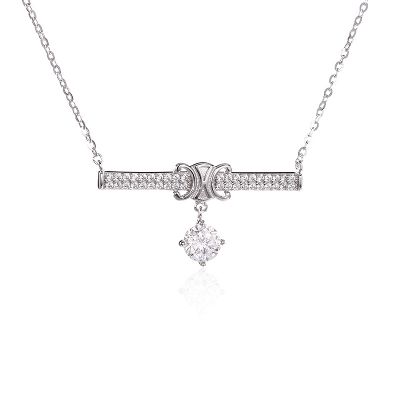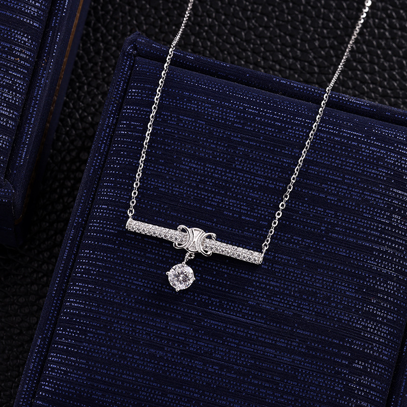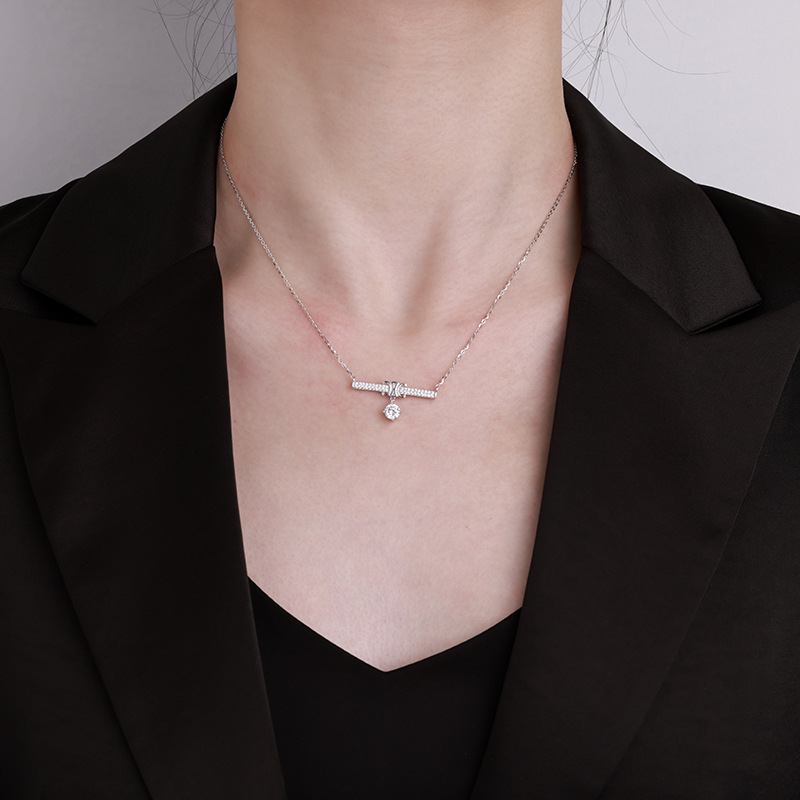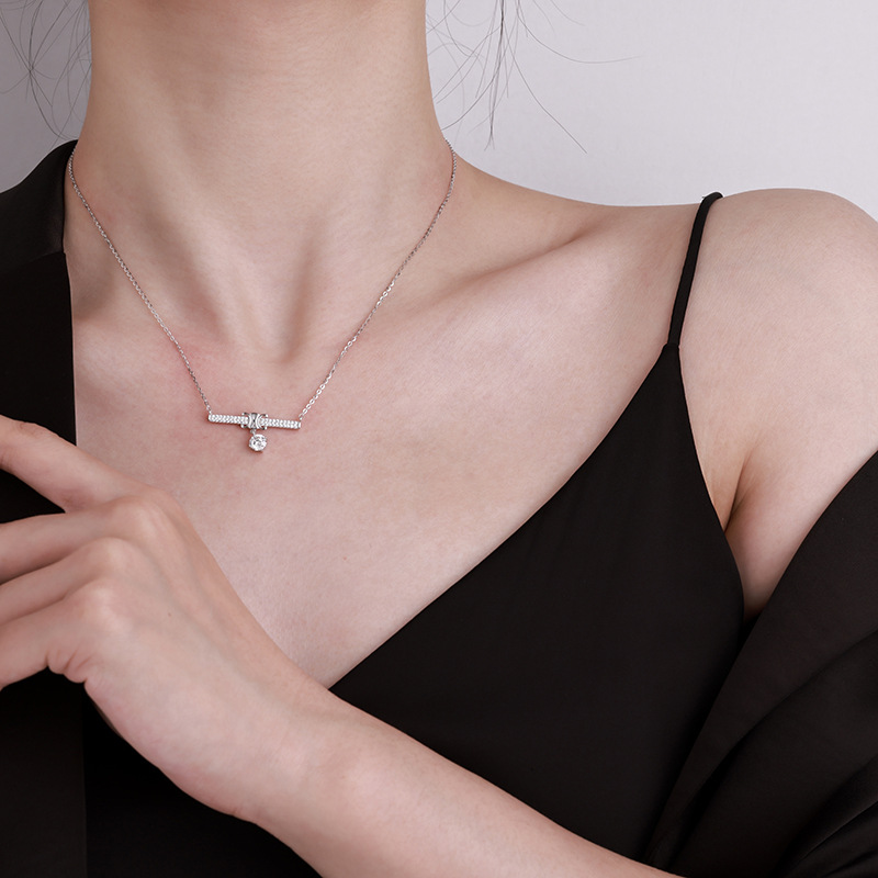 s925纯银X字母吊坠莫桑石项链高级百搭女小众简约时尚锁骨链