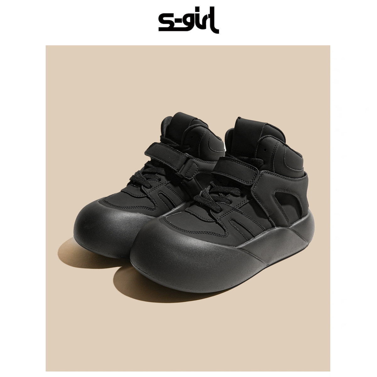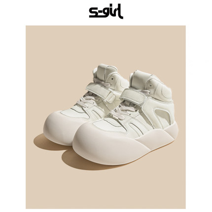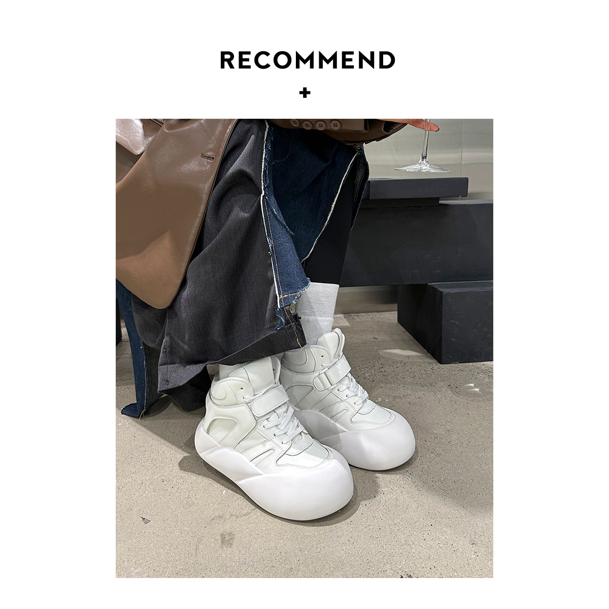 SGIRL TWTW真皮厚底高帮大头面包鞋女2024休闲百搭板鞋丑萌小白鞋