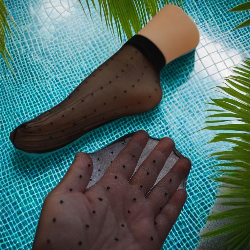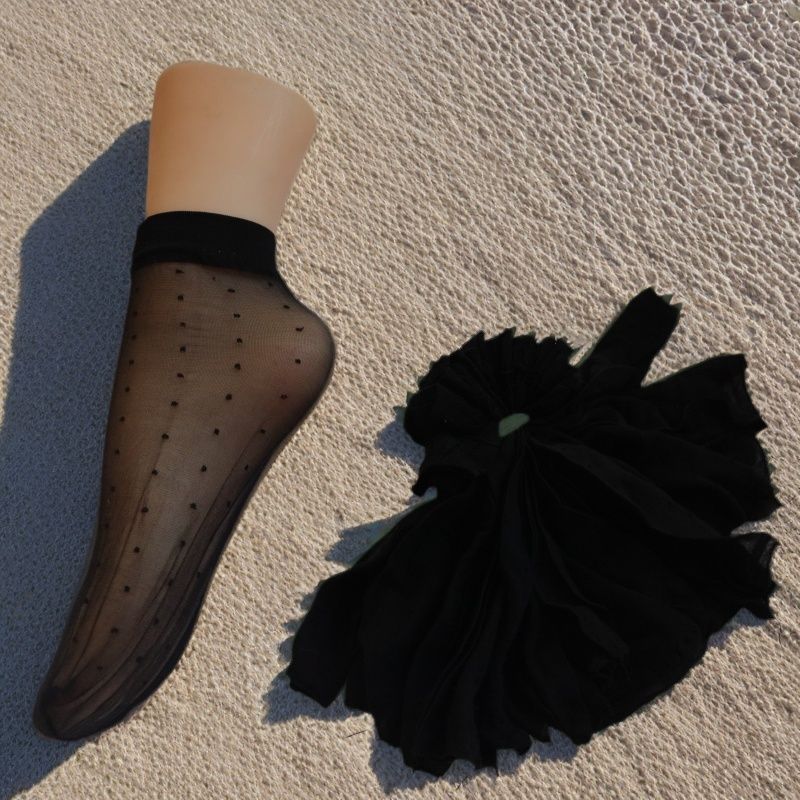 夏季女短款百搭波点黑丝袜女超薄款防勾丝高透肉黑色黑点点短袜子