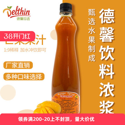 德馨浓缩果汁印度金芒果汁800ml奶茶店专用冲饮芒果汁饮料浓浆
