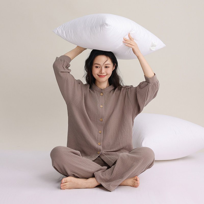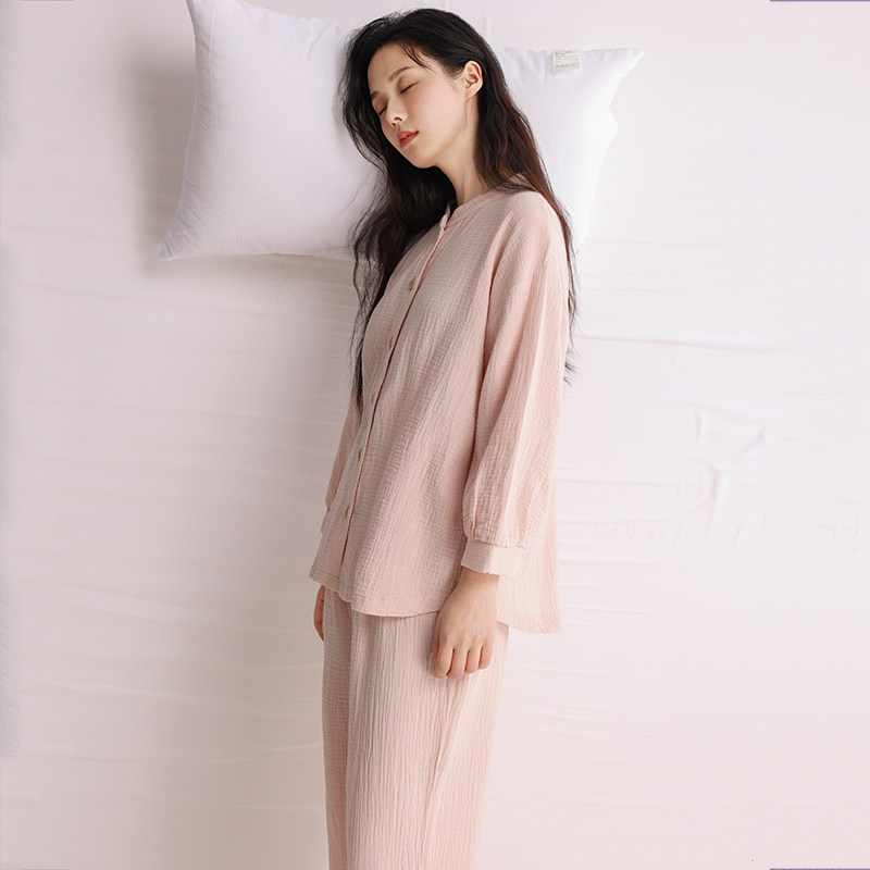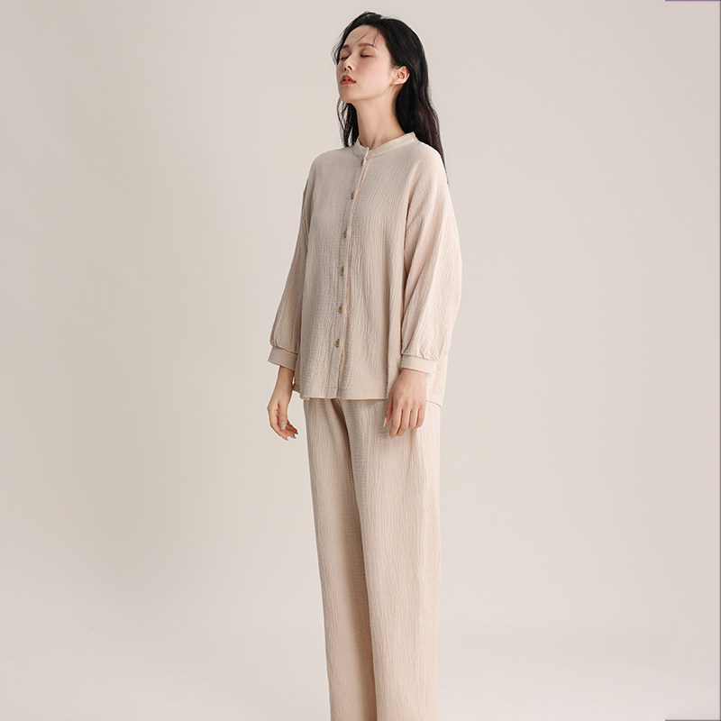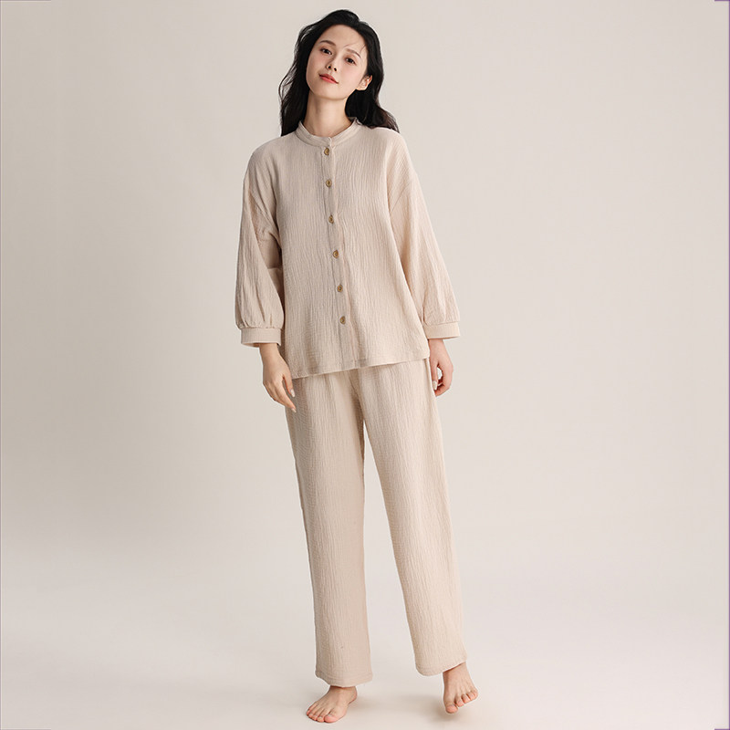日系小立领睡衣女纯棉双层纱布全棉无印风可外穿家居服春夏秋套装