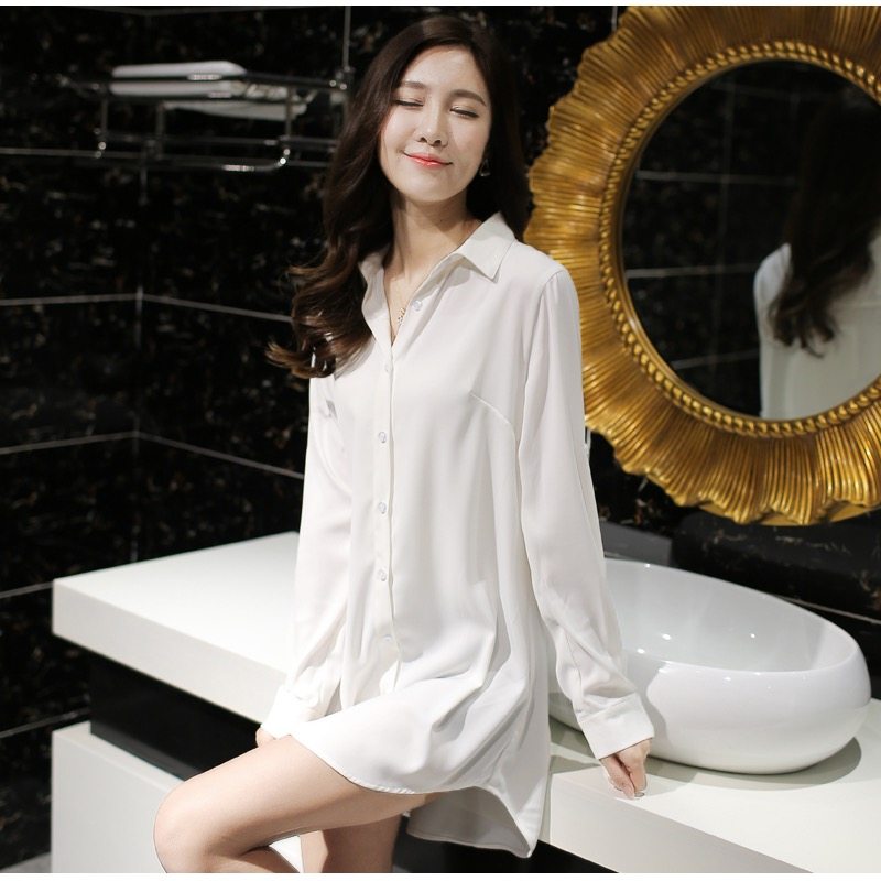 白衬衫女中长款韩范男朋友风宽松衬衣bf性感睡衣慵懒上衣长袖外穿