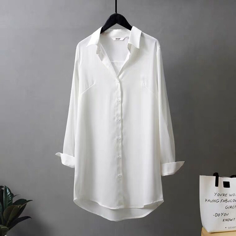 白衬衫女中长款韩范男朋友风衬衣