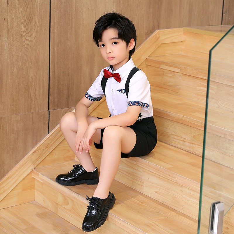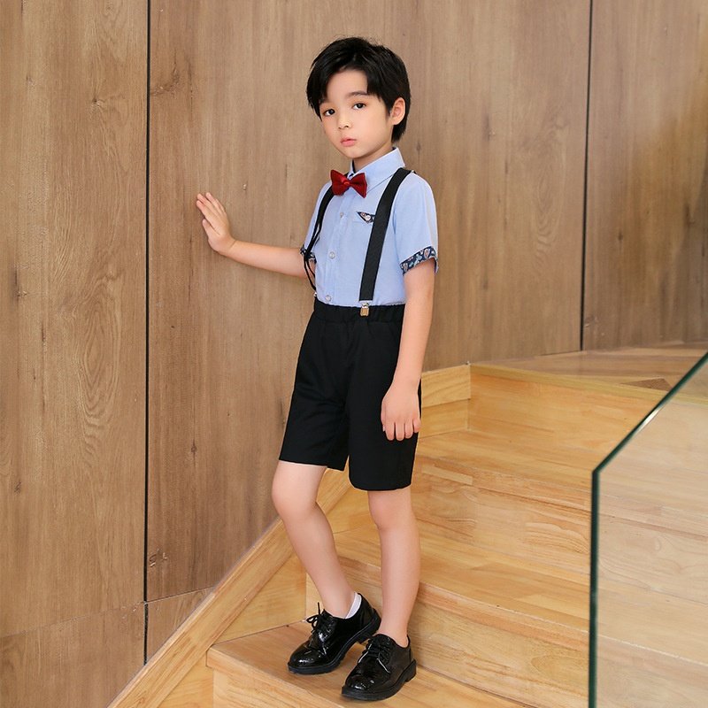 儿童礼服夏季新款英伦短袖背带裤套装男童六一主持合唱演出服