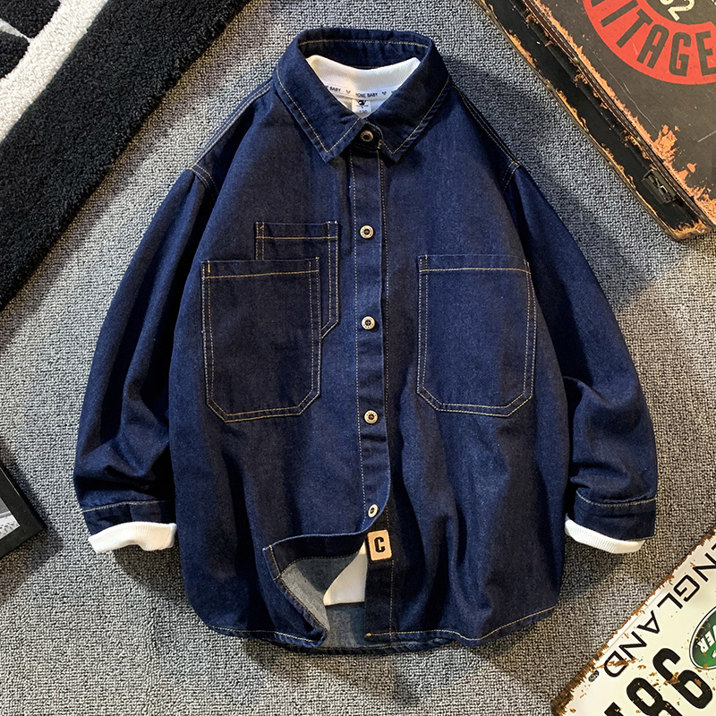 男童牛仔衬衫春秋款中大童2023新款秋装上衣儿童衬衫长袖外套森系