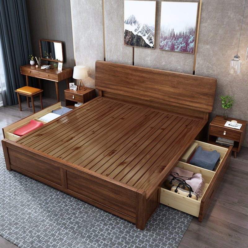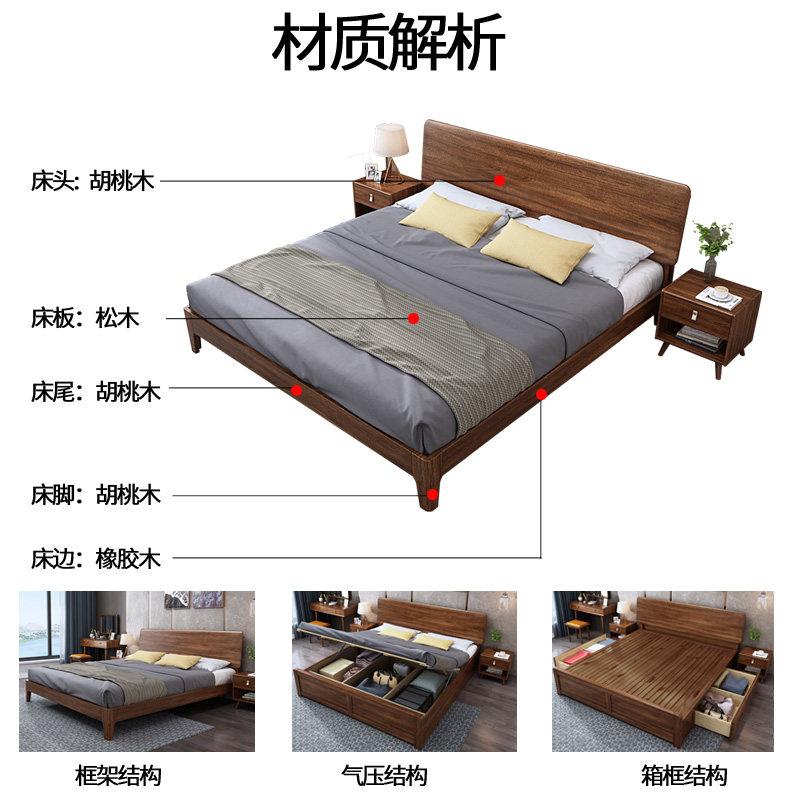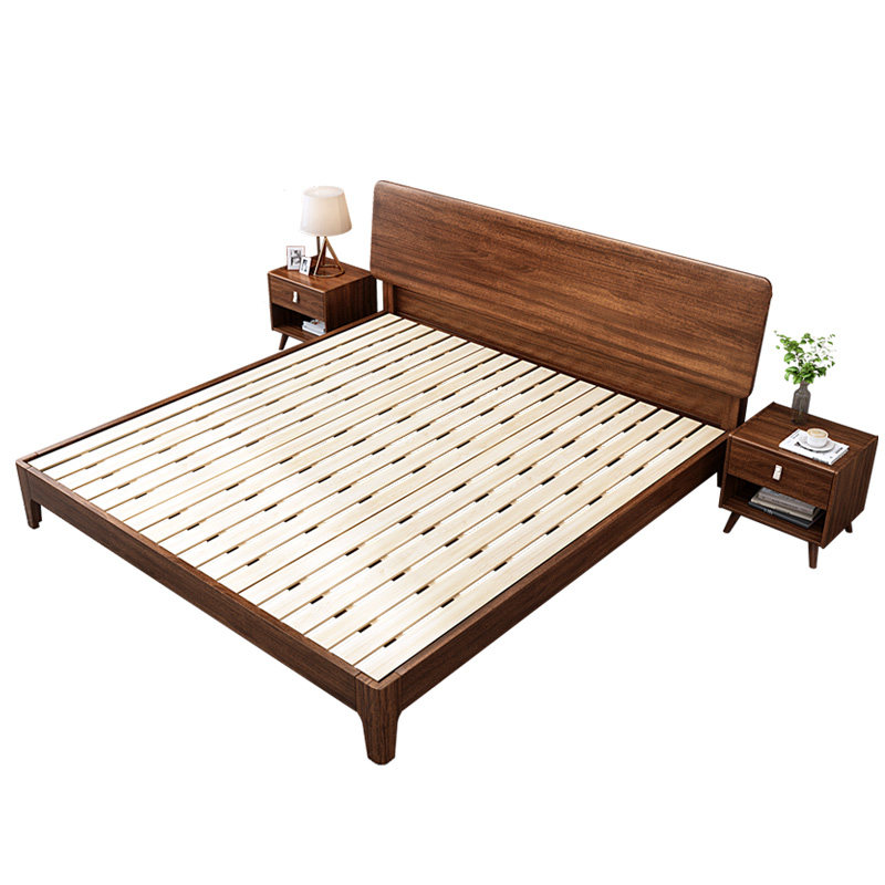 全友家居胡桃木北欧全实木床1.8米1.5m大床现代简约单双人主卧风