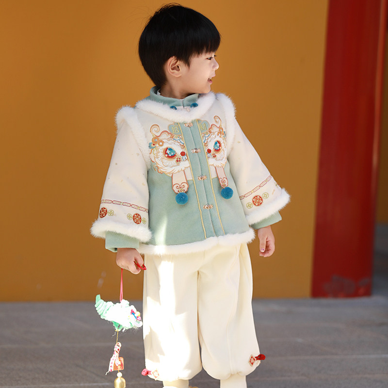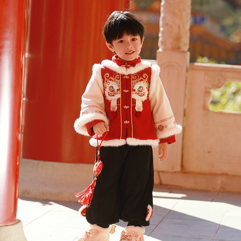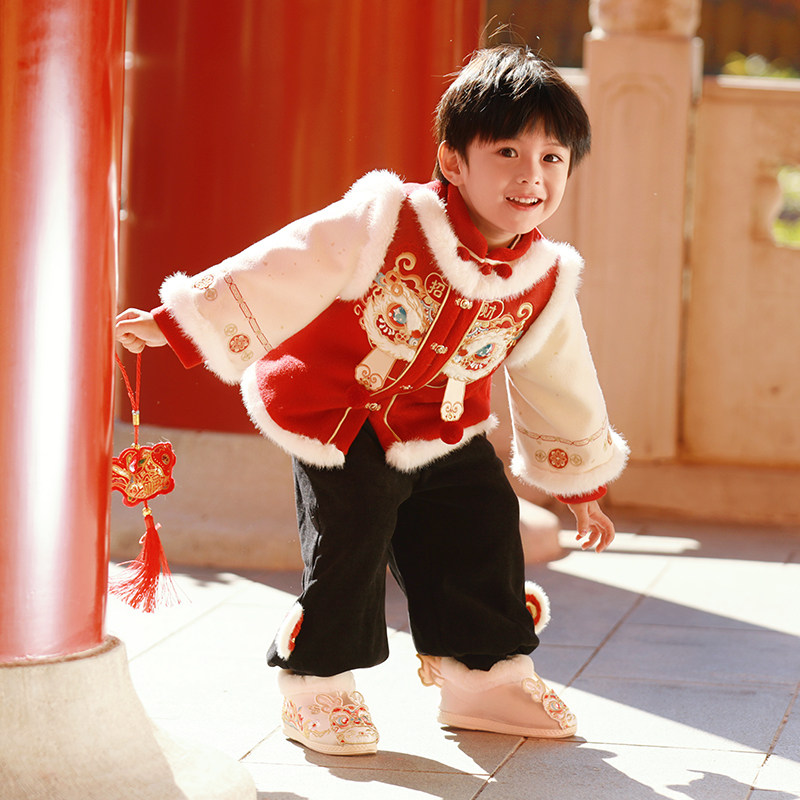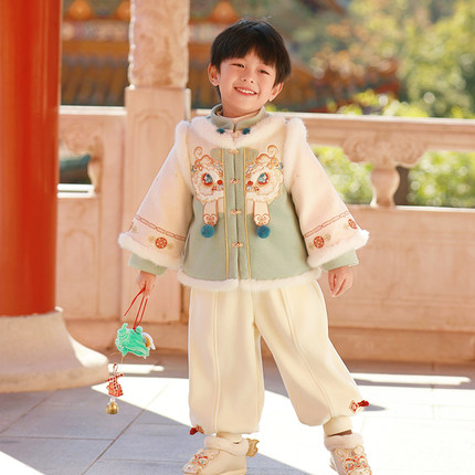 男童拜年服冬装儿童汉服加厚中国风套装周岁礼服唐装宝宝过年衣服